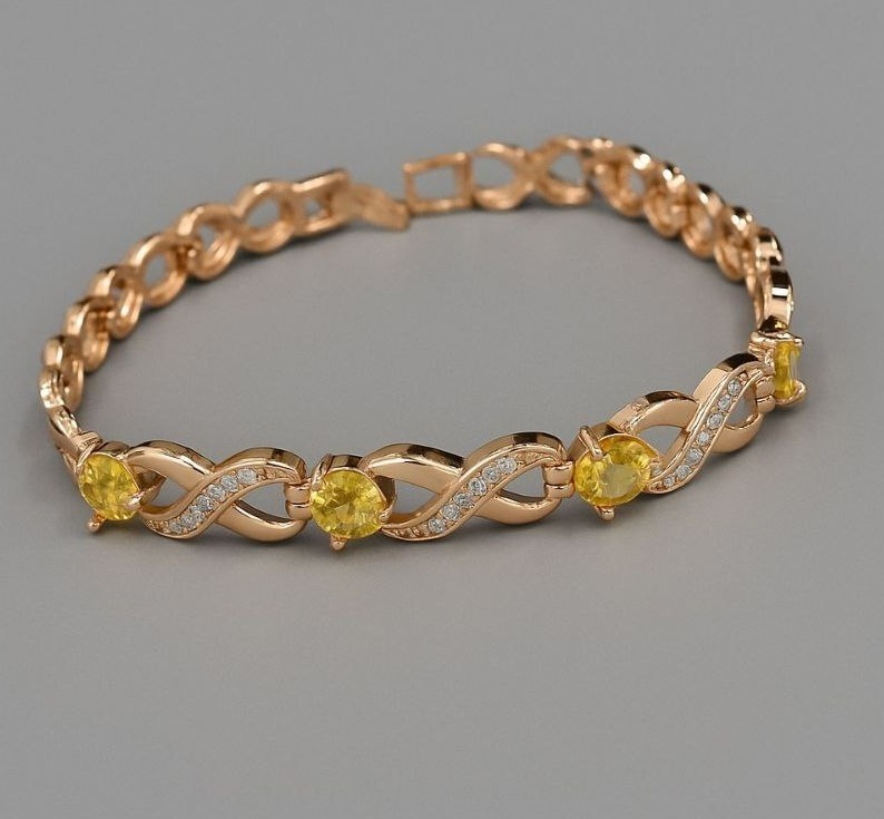 Браслет женский на руку Дубайское золото покрытие позолота, вставка: фианит, арт.314.952 2 фото