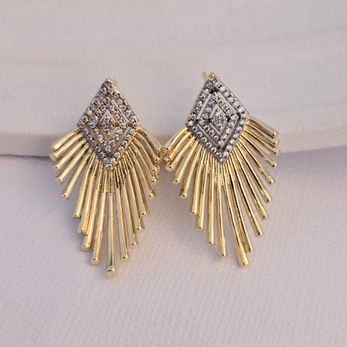 Серьги ювелирная бижутерия Итальянское золото (покрытие желтое 14к), вставка: фианиты, цвет: прозрачный, арт.216.422