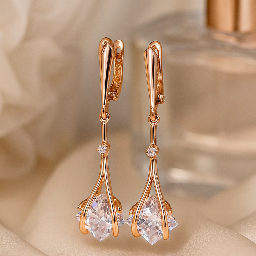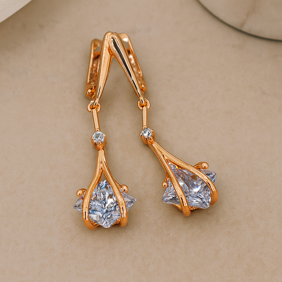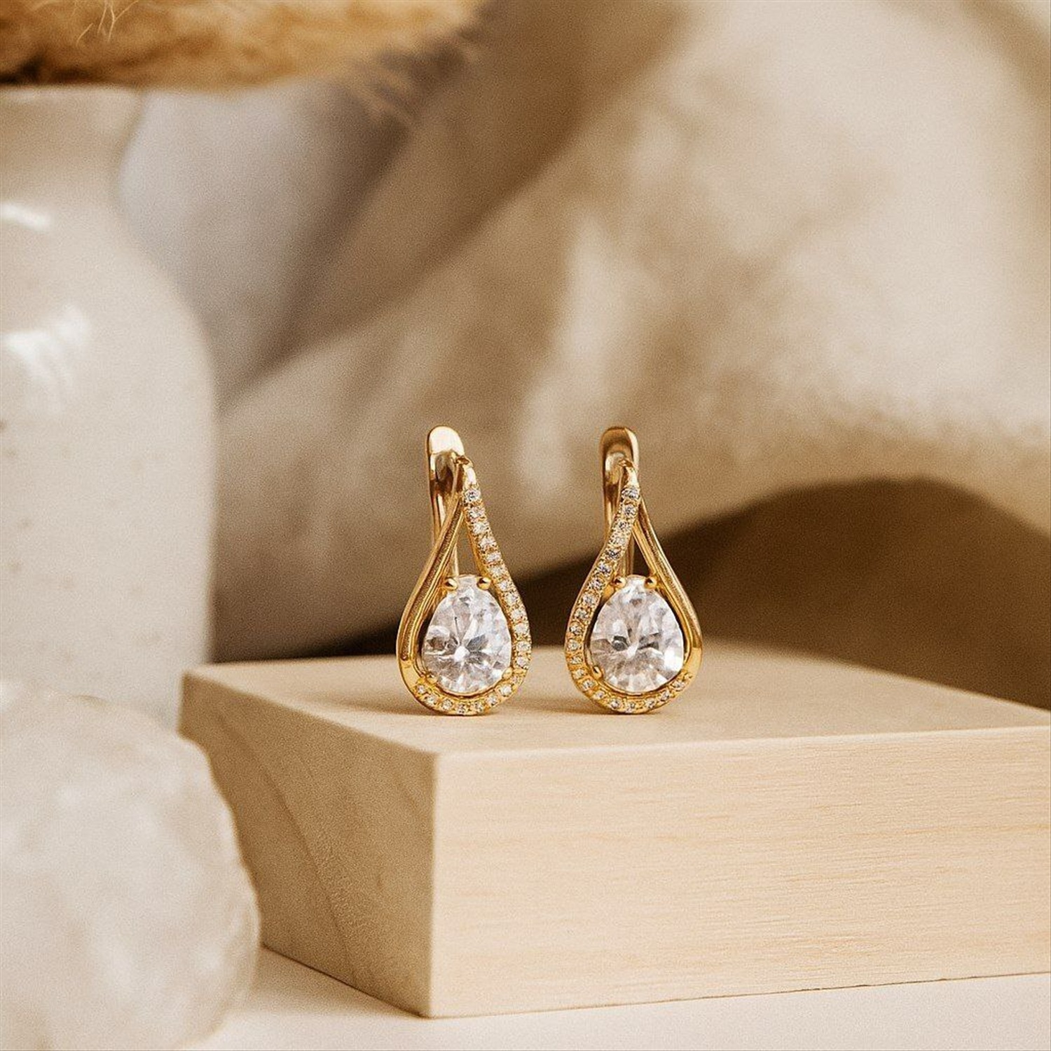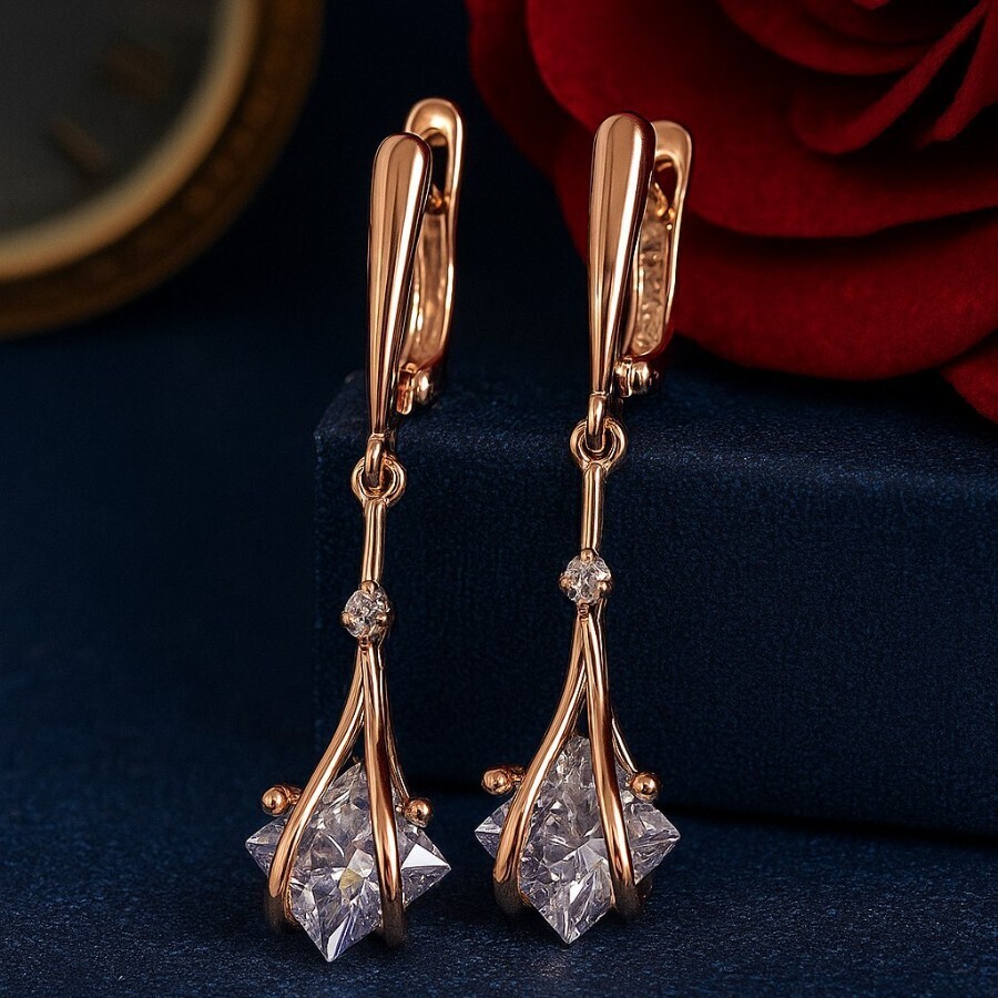 Серьги с прозрачным камнем "Дубайское золото", арт.313.243 2 фото