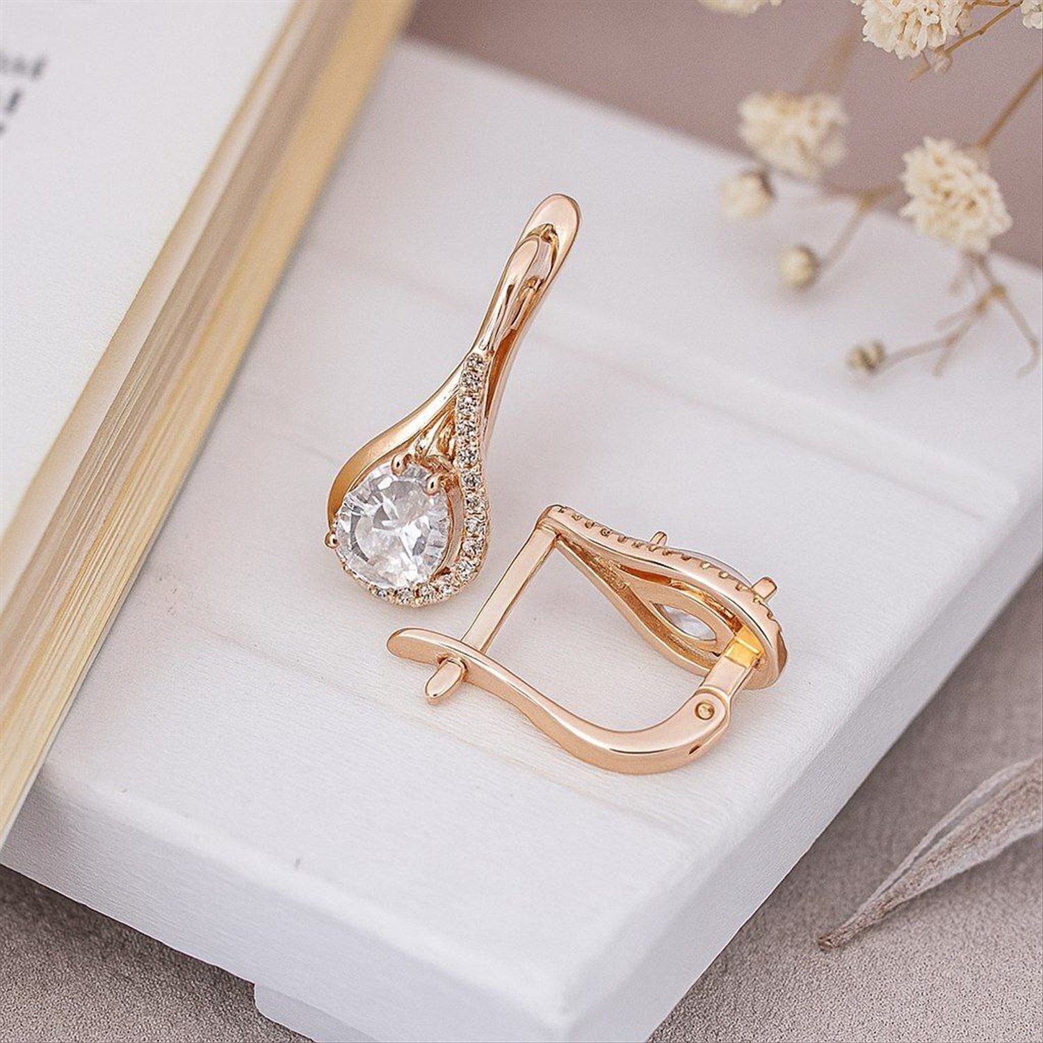 Серьги подвески длинные с белым камнем, покрытие позолота 585 пробы, арт.314.982 4 фото