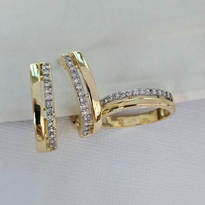 Комплект ювелирной бижутерии Итальянское золото (покрытие желтое 14к), серьги и кольцо 19 р, вставка: фианиты, цвет: прозрачный, арт.216.426-19