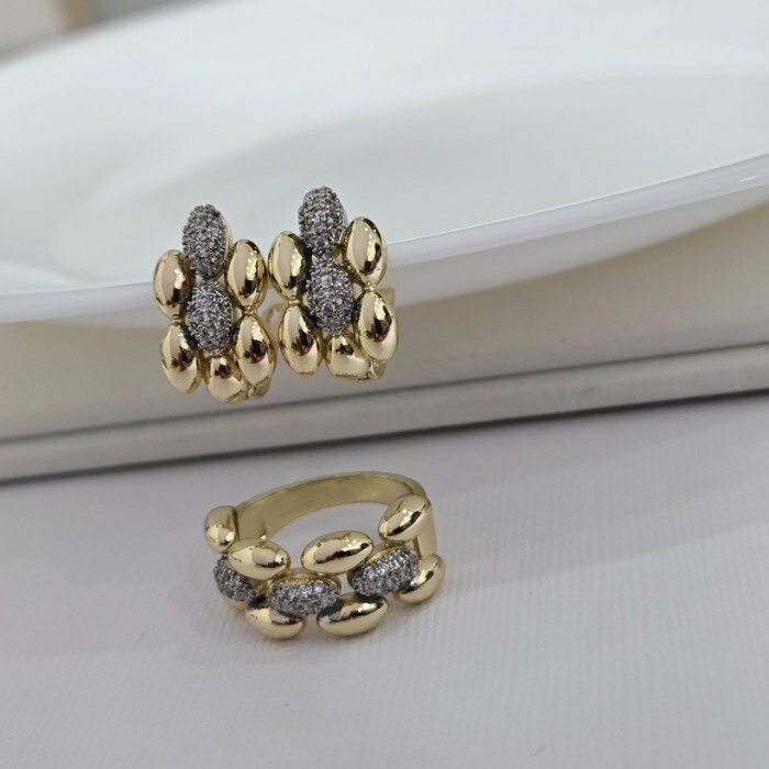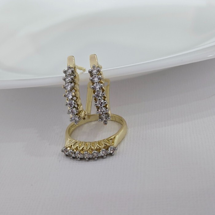 Комплект ювелирной бижутерии Итальянское золото (покрытие желтое 14к), серьги н и кольцо 17 р, вставка: фианиты, цвет: прозрачный, арт.216.430-17