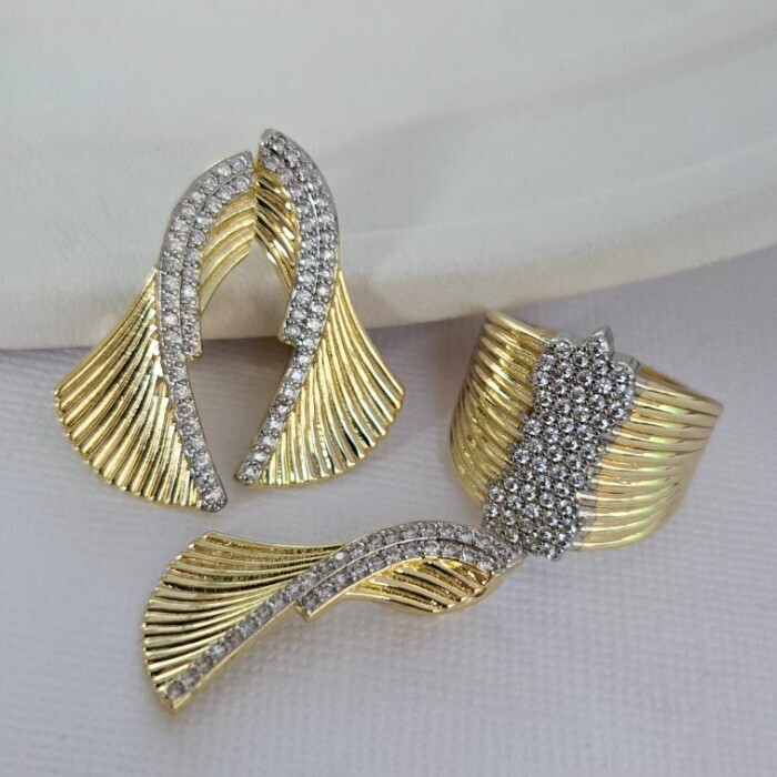 Комплект ювелирной бижутерии коллекция "Дубай" серьги и кольцо 17 р, двойное покрытие позолота и вставка из посеребрения, вставка: фианиты, цвет: прозрачный, арт.214.969-17