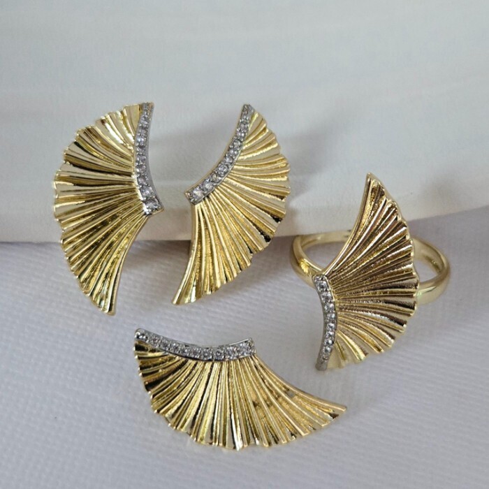 Комплект ювелирной бижутерии коллекция "Дубай" с алмазной гранью серьги и кольцо 20 р, покрытие позолота, арт.314.194-20 2 фото