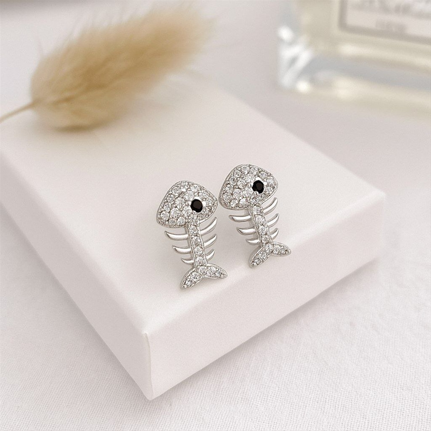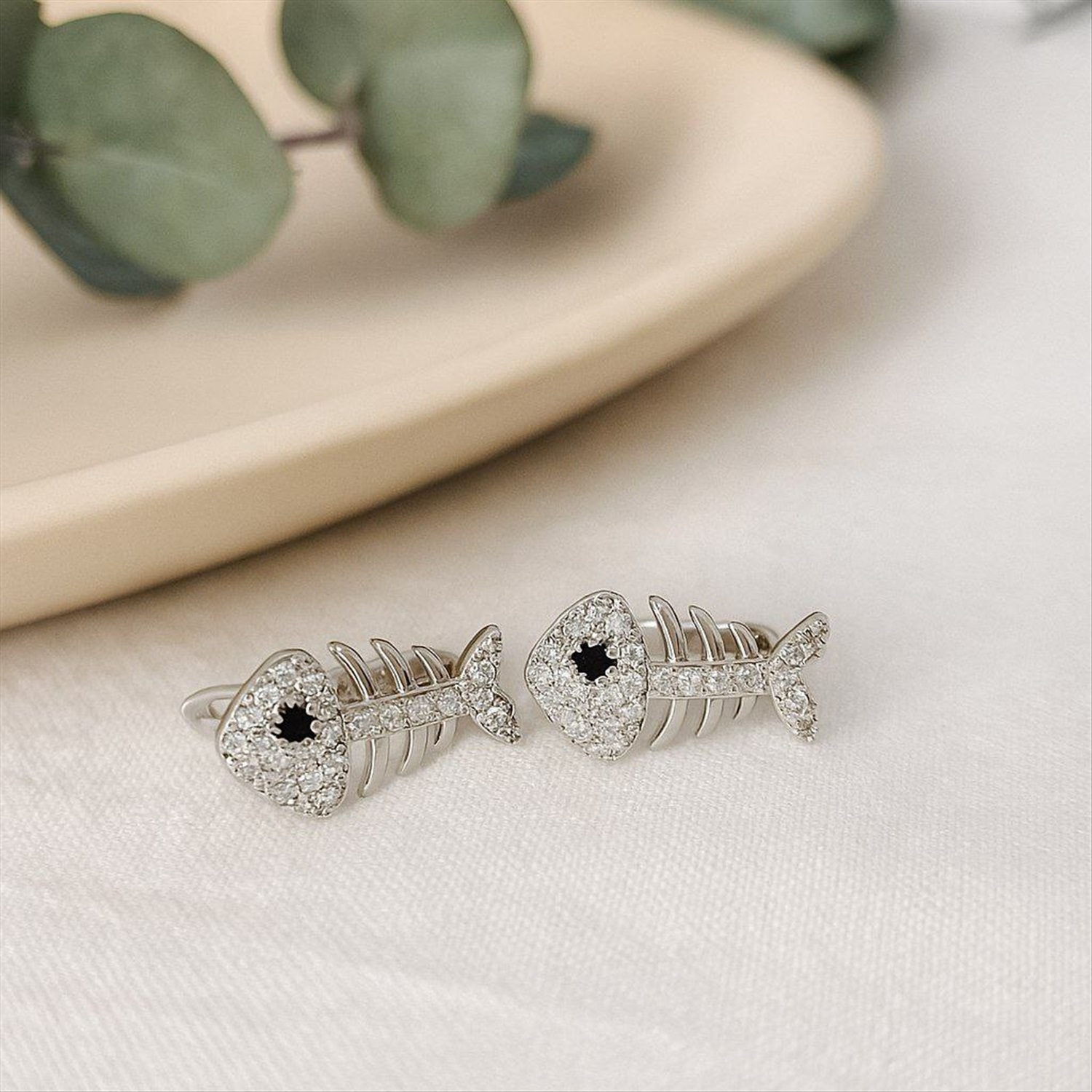 Серьги скелет рыбы, покрытие посеребрение, арт.313.244 2 фото