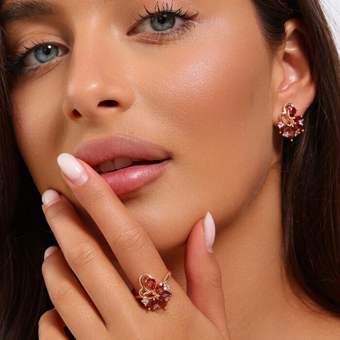 Комплект ювелирной бижутерии коллекция "Дубай" серьги и кольцо 17 р, покрытие позолота, вставка: фианиты, цвет: красный и прозрачный, арт.215.474-17 2 фото