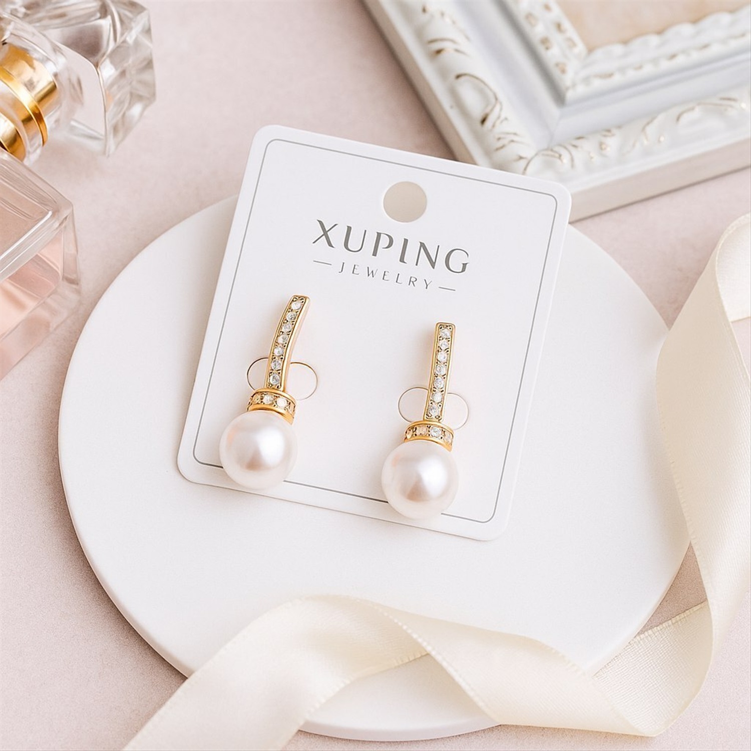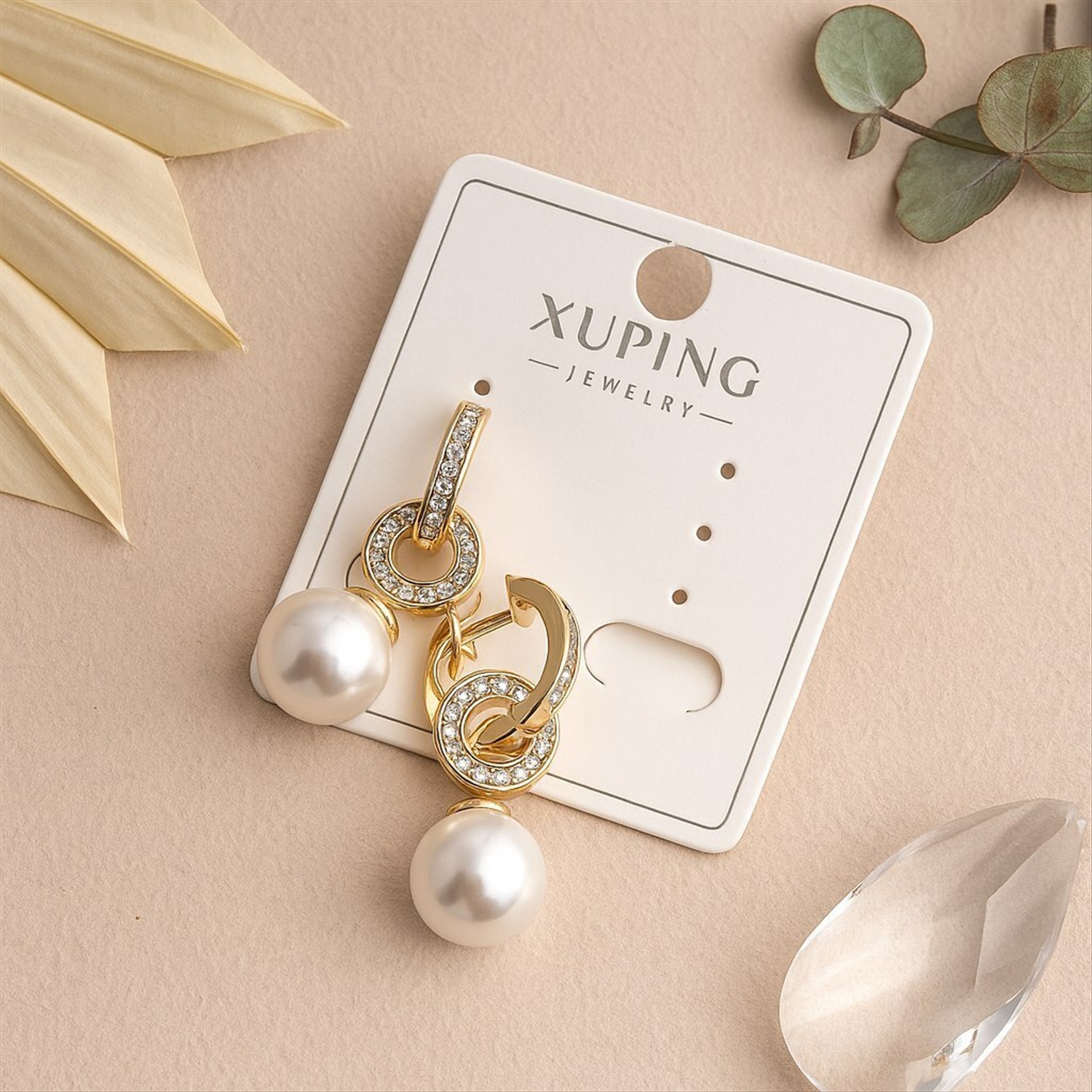 Серьги коллекция "Xuping" покрытие позолота, вставка: фианиты и искусственный жемчуг, арт.004.103 2 фото