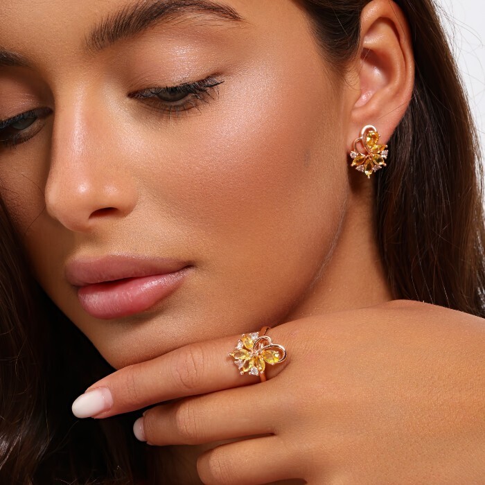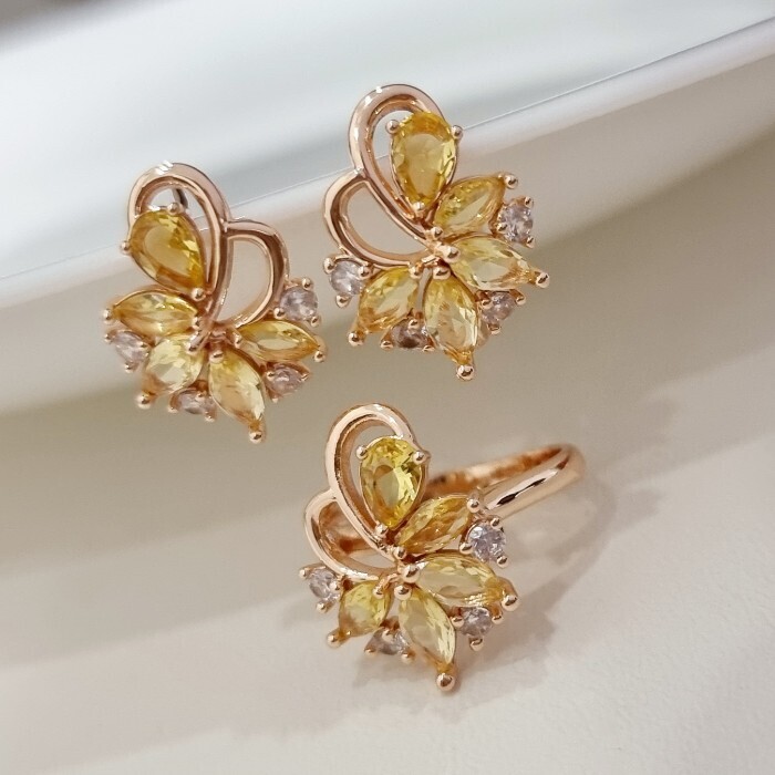 Комплект ювелирной бижутерии коллекция "Дубай" серьги и кольцо 17 р, покрытие позолота, вставка: фианиты, цвет: желтый и прозрачный, арт.215.479-17 2 фото