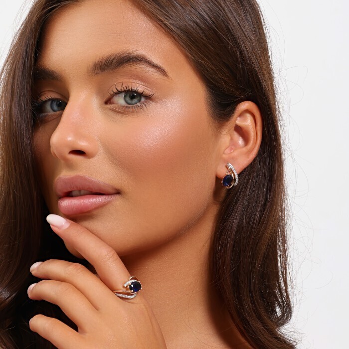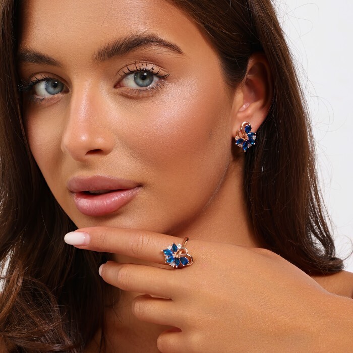 Комплект ювелирной бижутерии коллекция "Дубай" серьги и кольцо 17 р, покрытие позолота, вставка: фианиты, цвет: синий и прозрачный, арт.215.473-17 2 фото