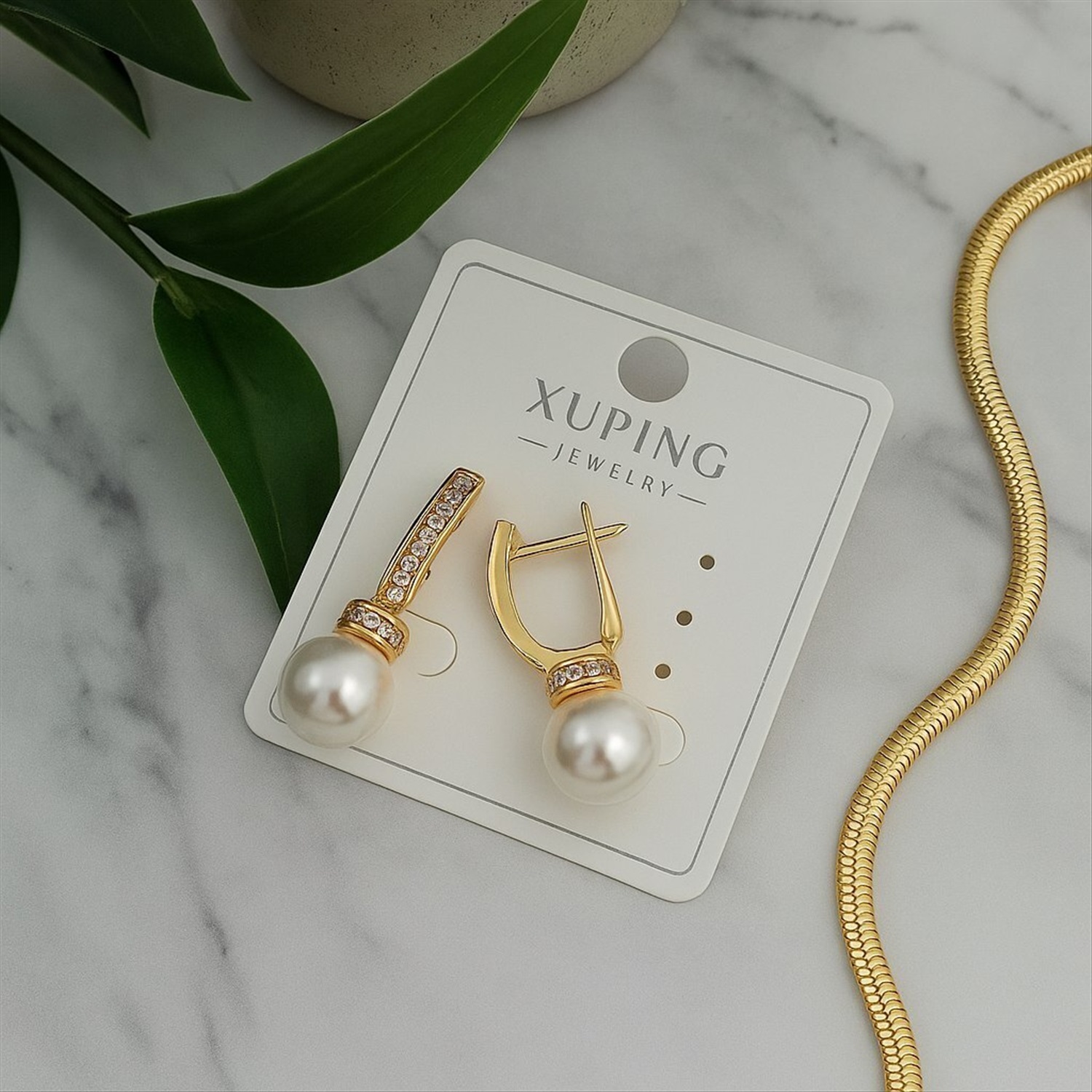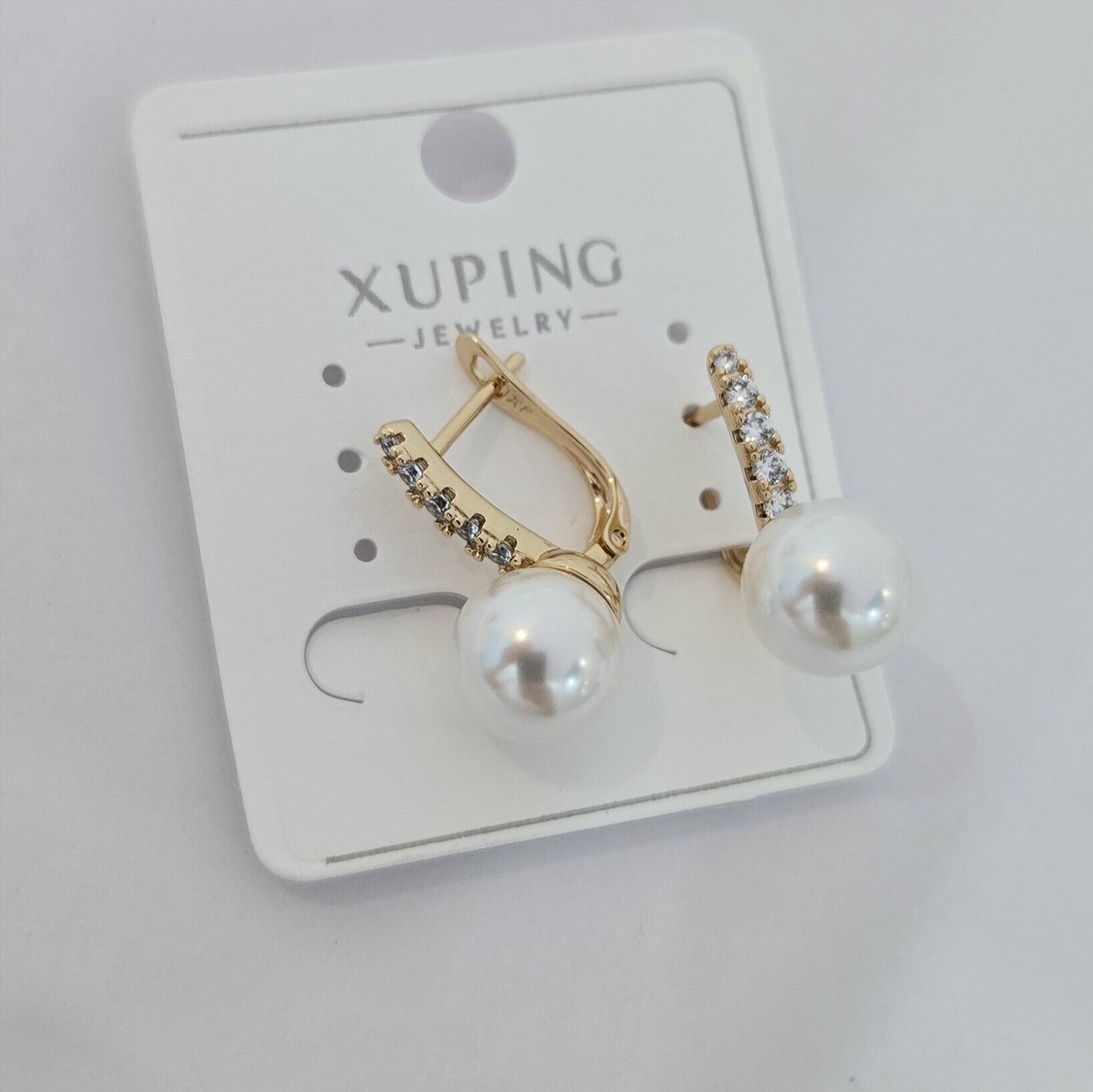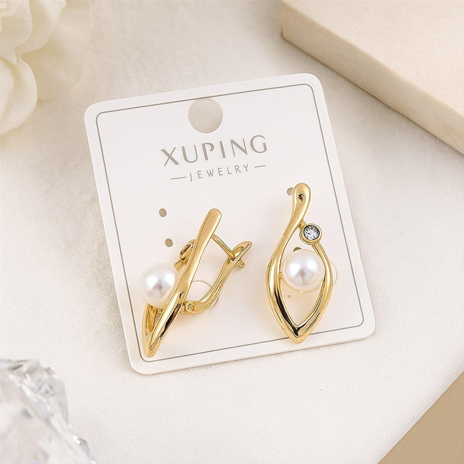 Серьги коллекция "Xuping" покрытие позолота, вставка: фианиты и искусственный жемчуг, арт.004.102