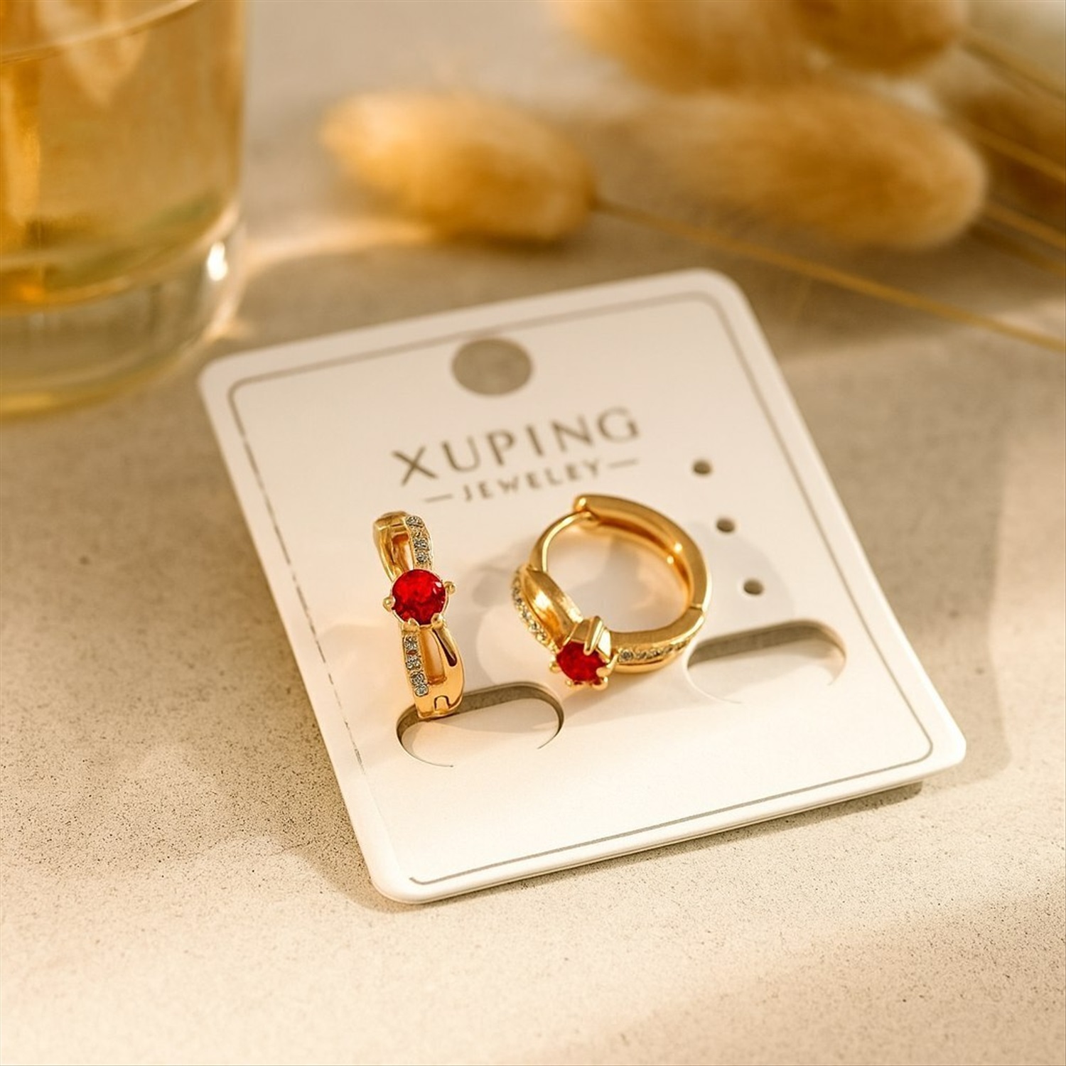 Серьги коллекция "Xuping" покрытие позолота, вставка: фианиты, цвет: прозрачный и красный, арт.004.094