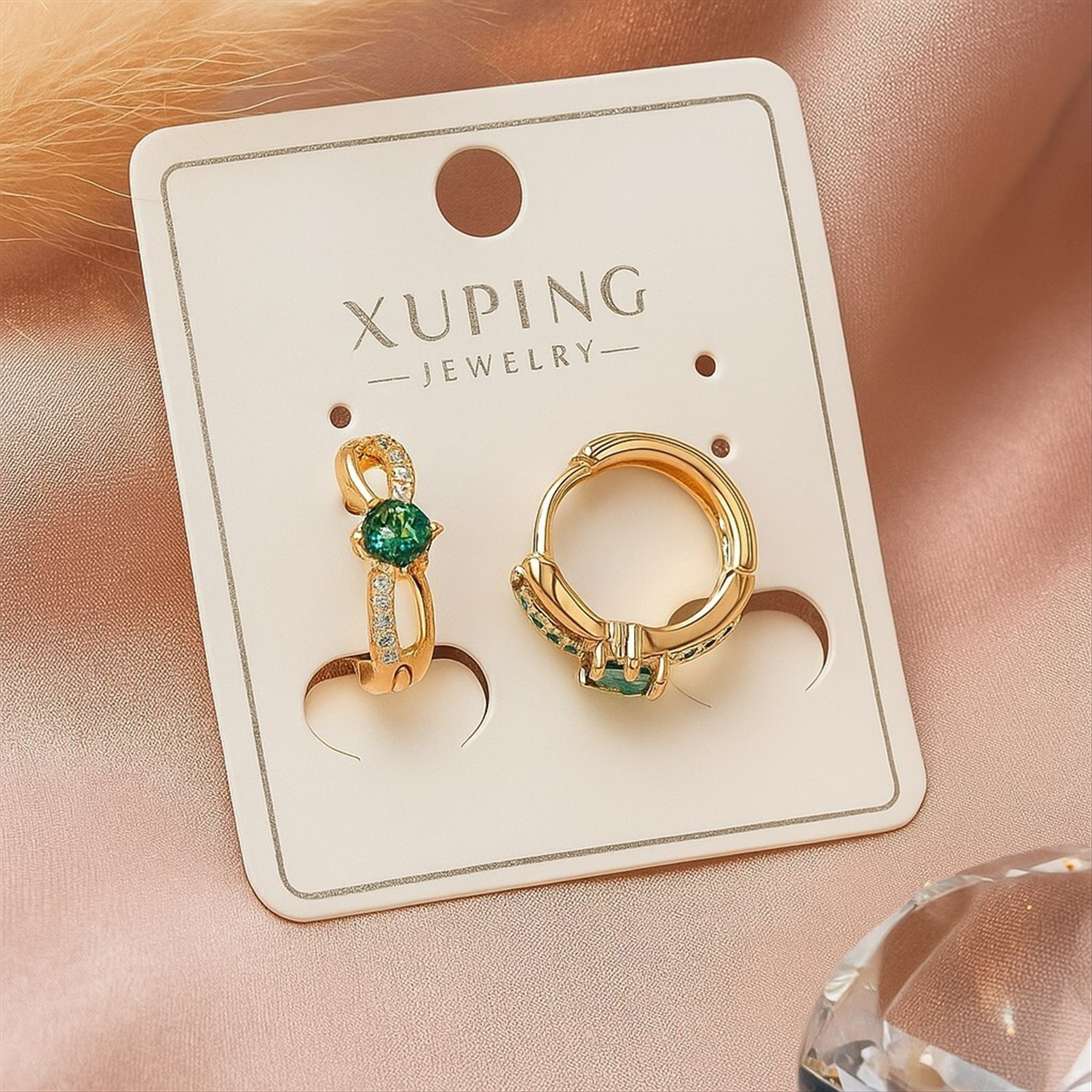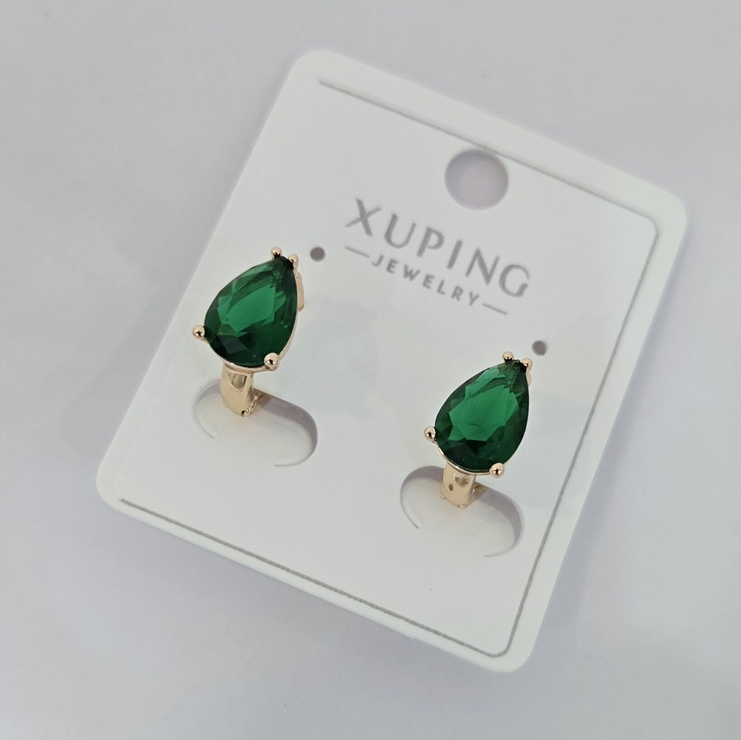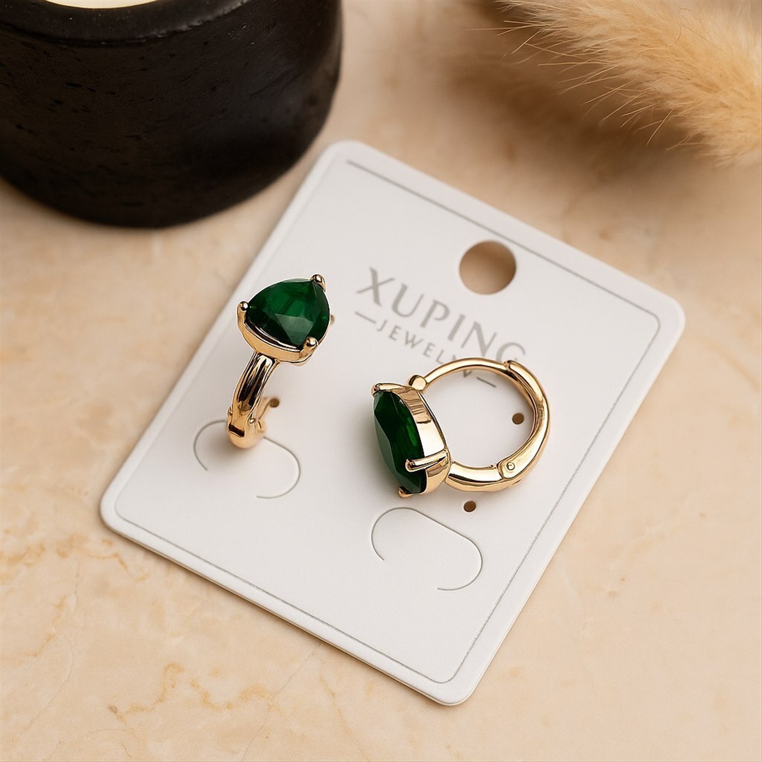 Серьги коллекция "Xuping" покрытие позолота, вставка: фианит, цвет: зеленый, арт.004.003 2 фото