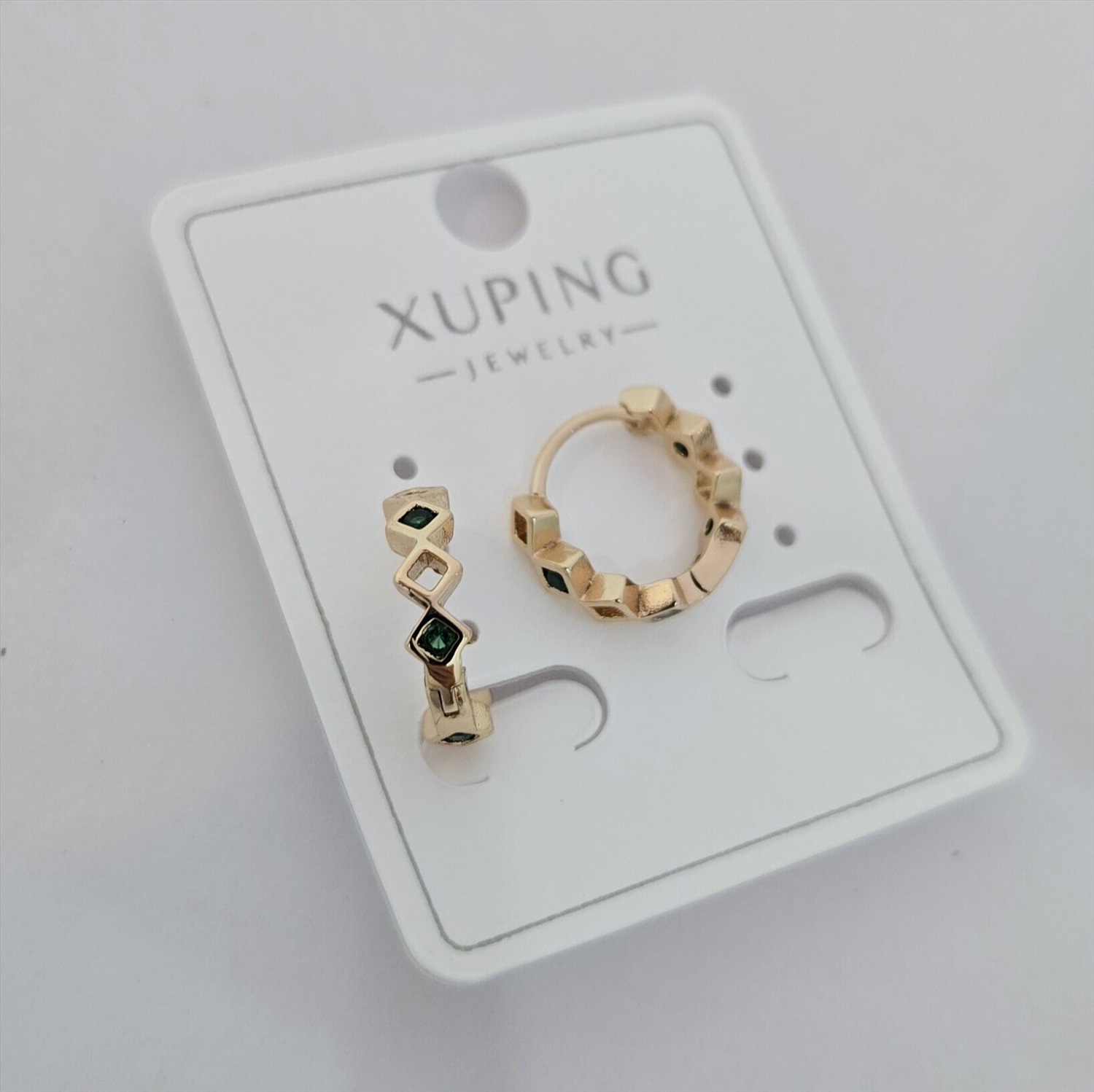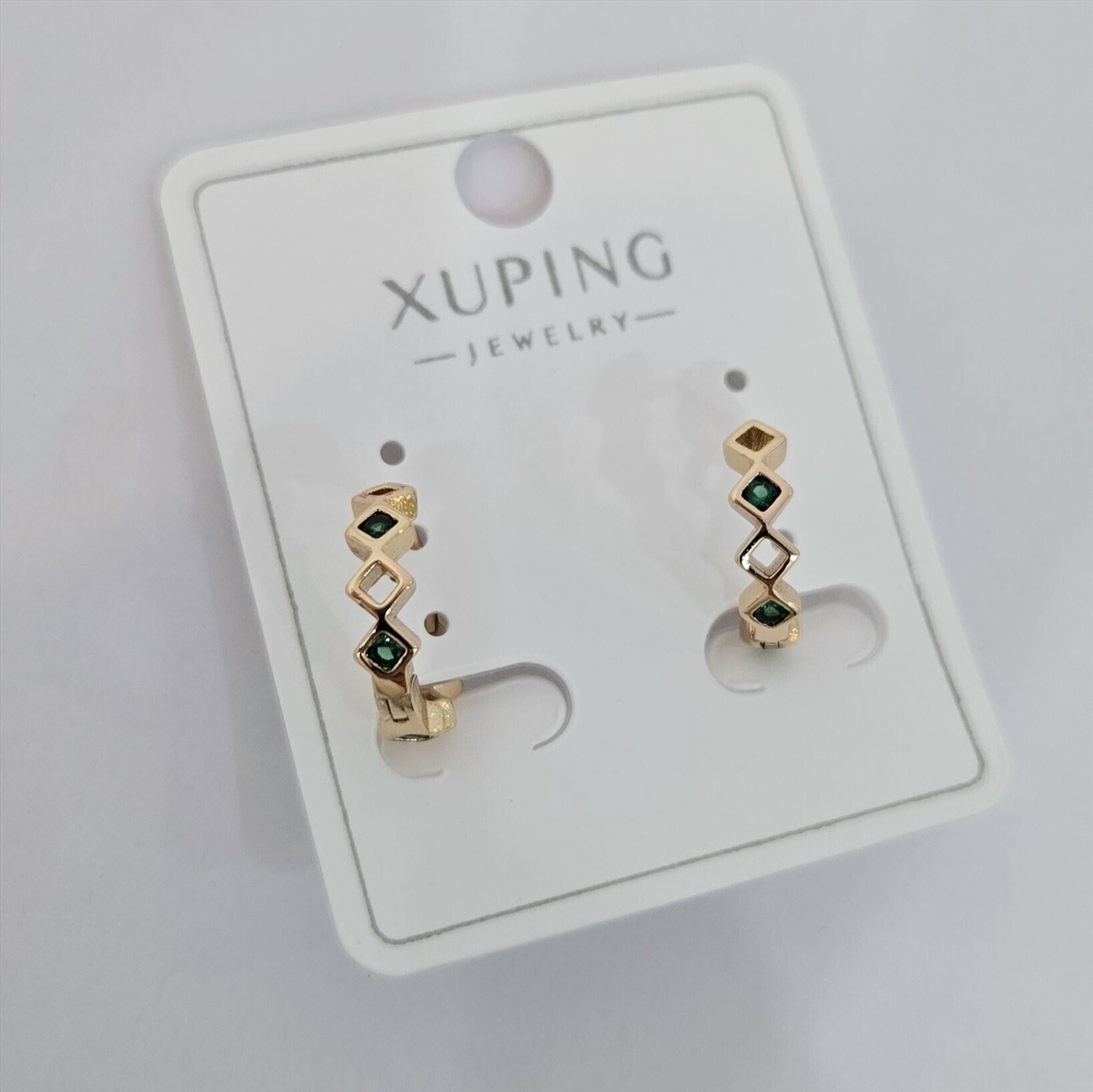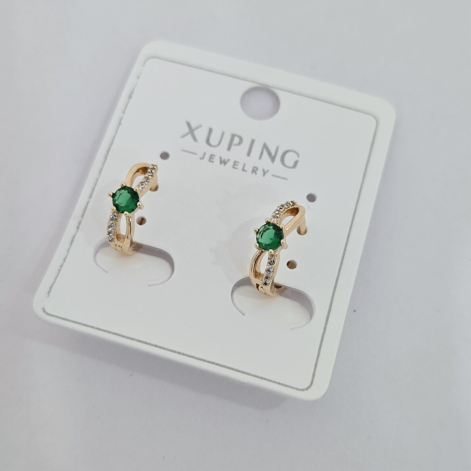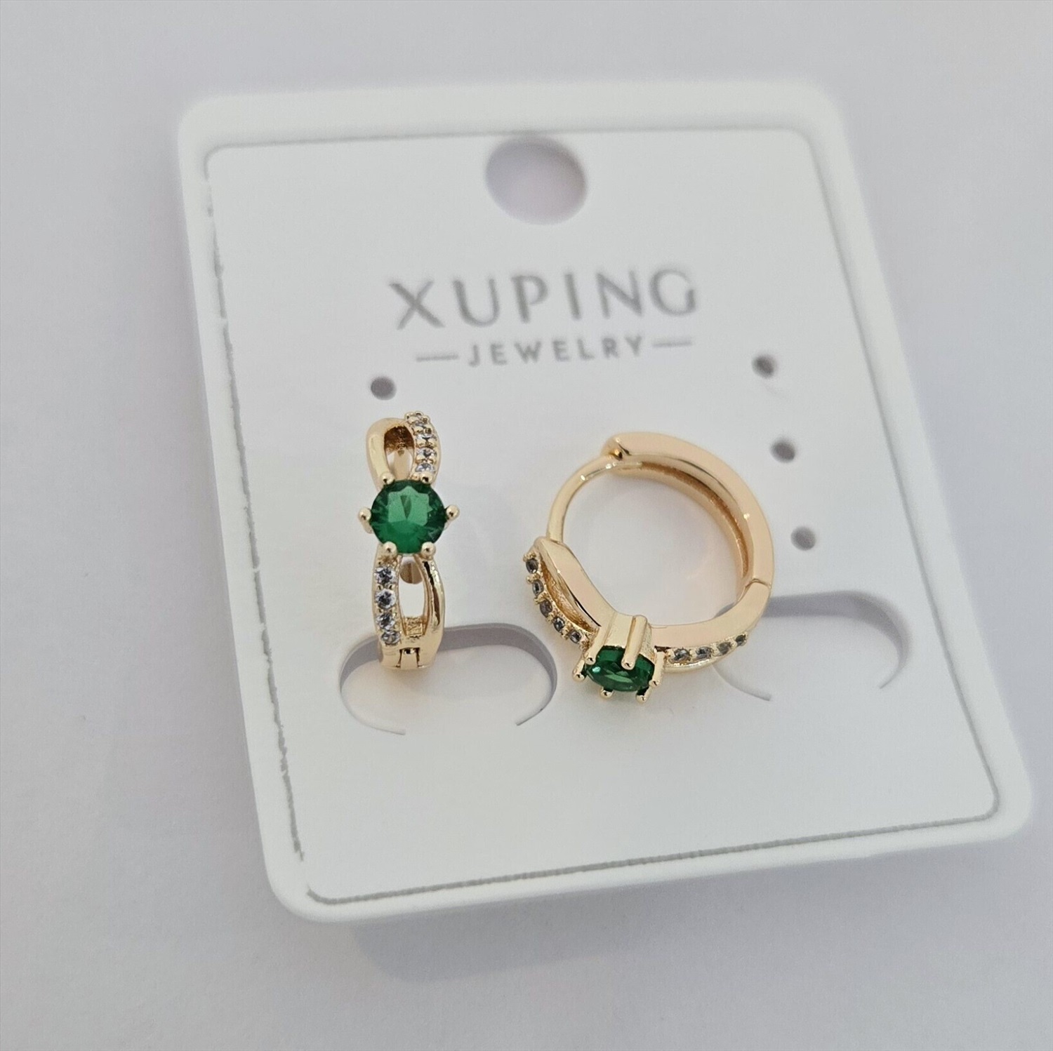 Серьги коллекция "Xuping" покрытие позолота, вставка: фианит, цвет: зеленый, арт.004.003 2 фото