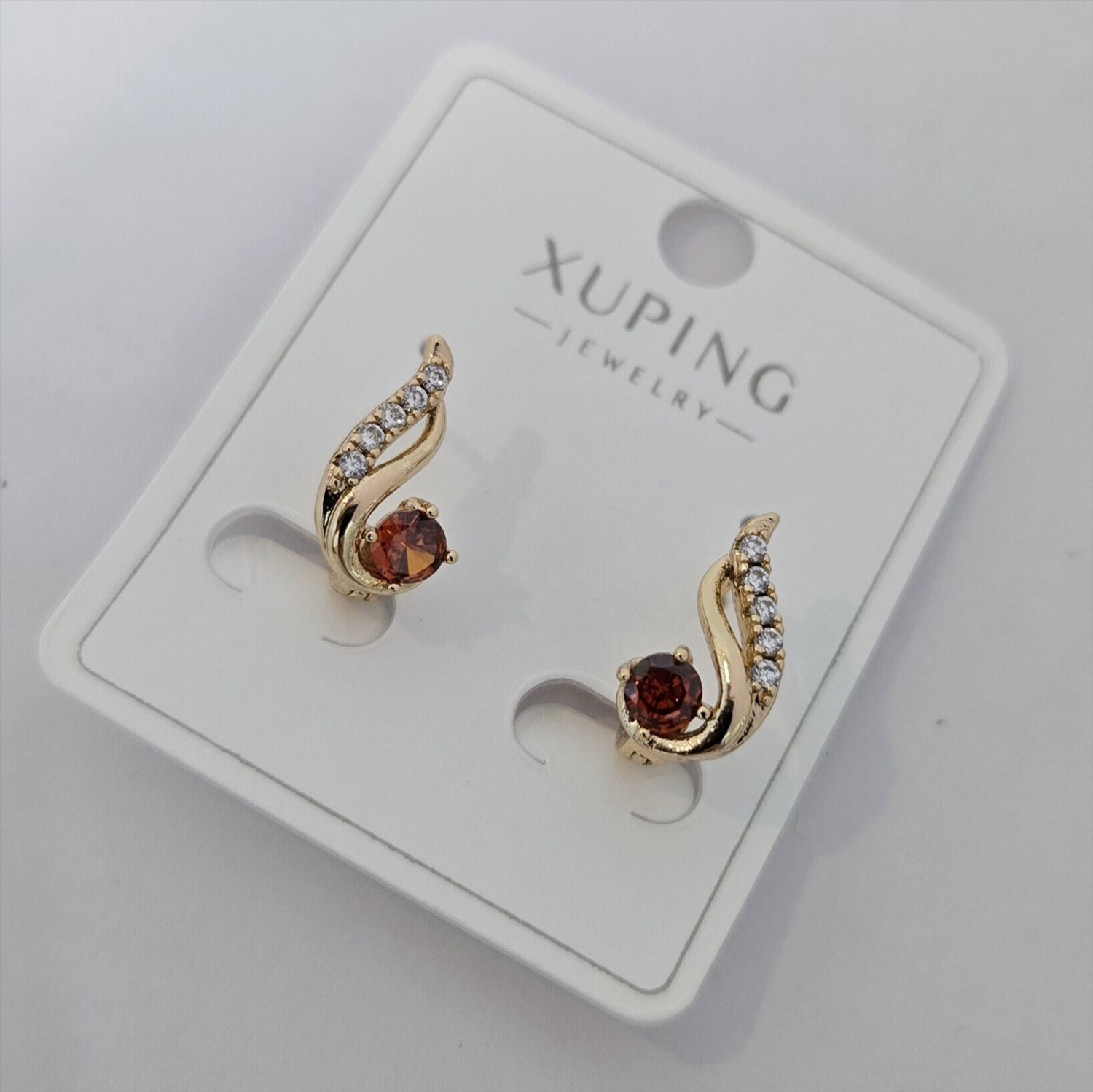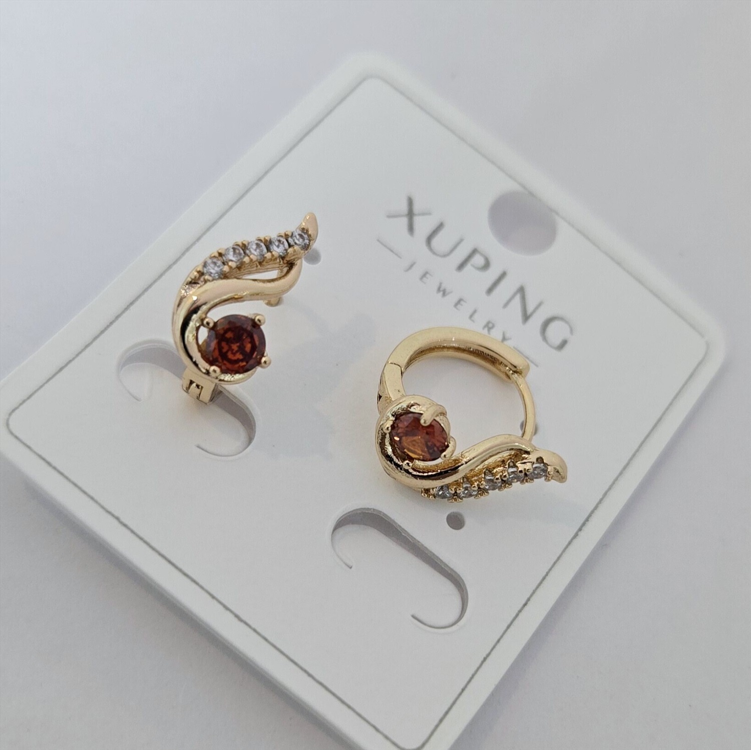 Серьги коллекция "Xuping" покрытие позолота, вставка: фианит, цвет: красный, арт.004.009 2 фото