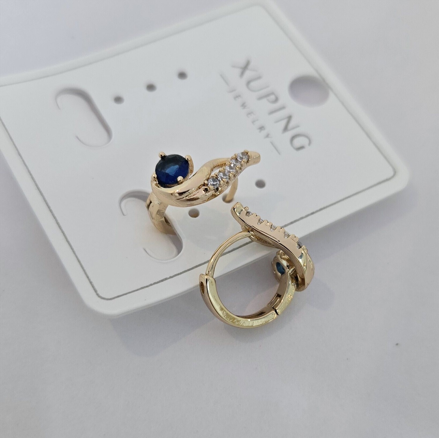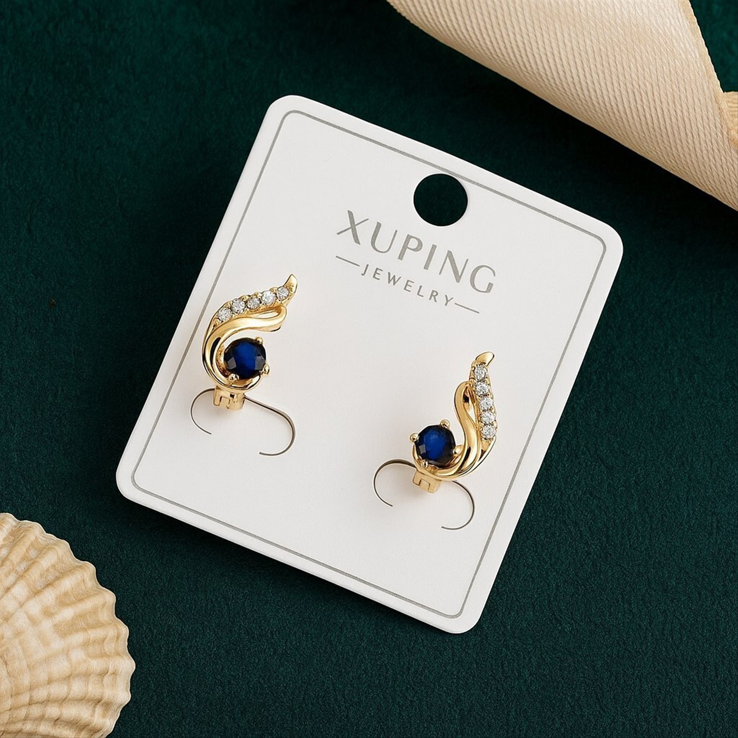 Серьги коллекция "Xuping" покрытие позолота, вставка: фианиты, цвет: прозрачный и синий, арт.004.015 2 фото