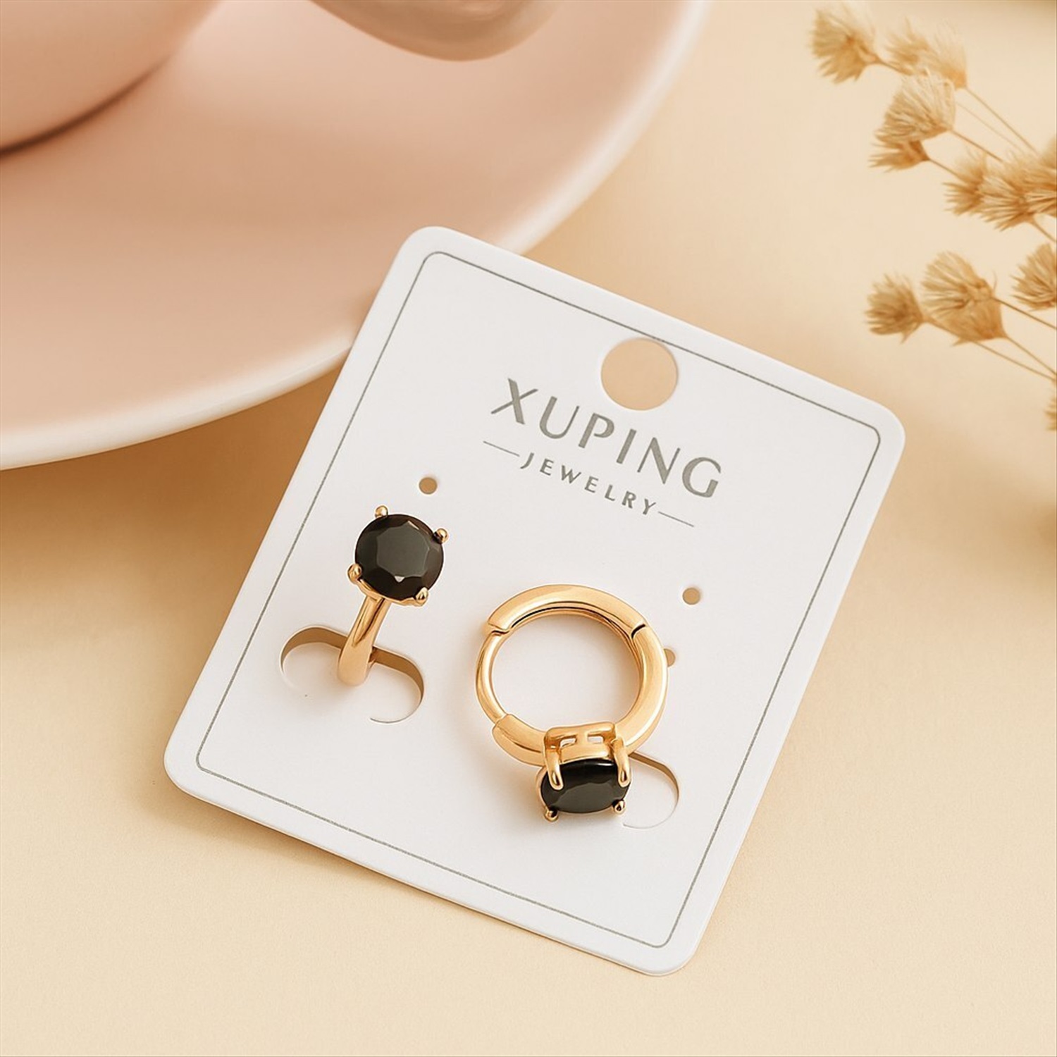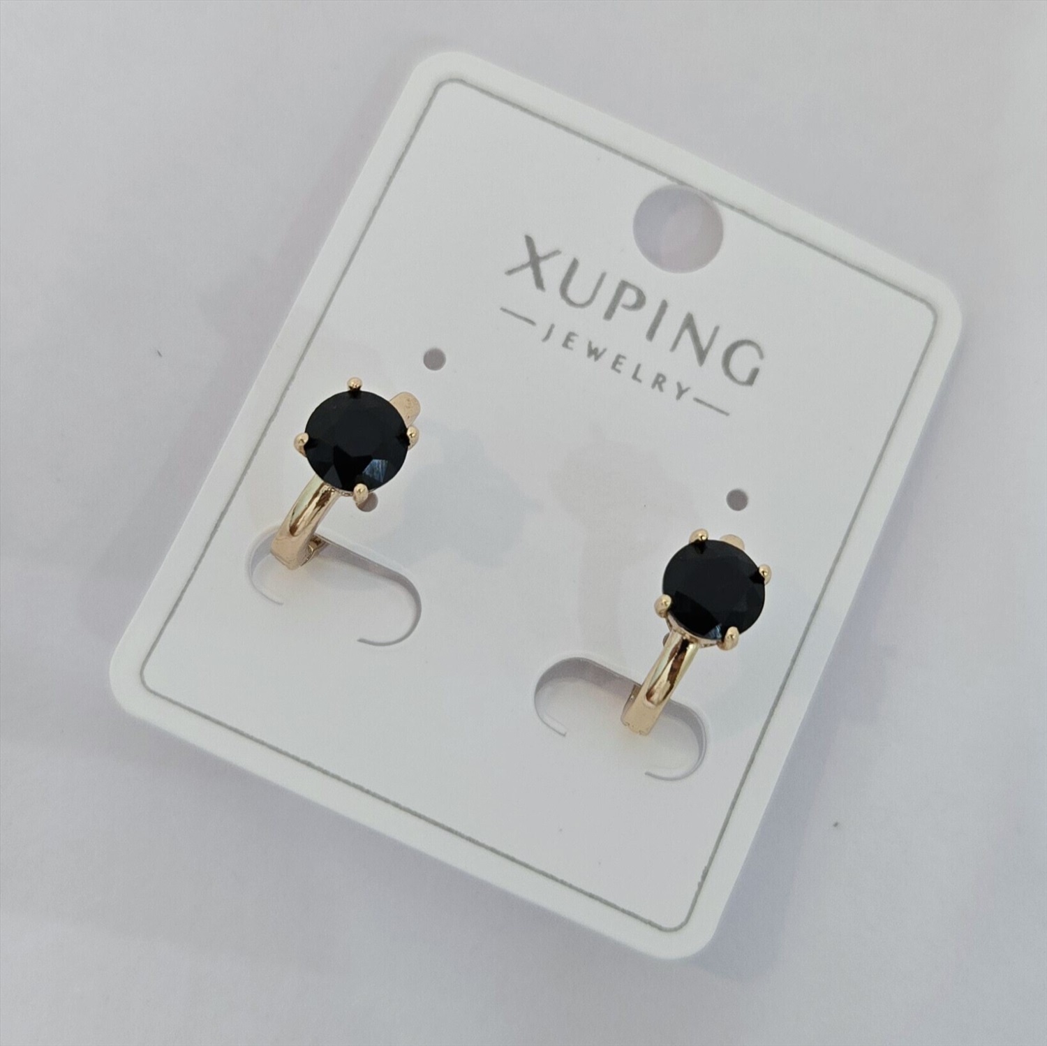 Серьги коллекция "Xuping" покрытие позолота, вставка: фианит, цвет: черный, арт.004.012 2 фото