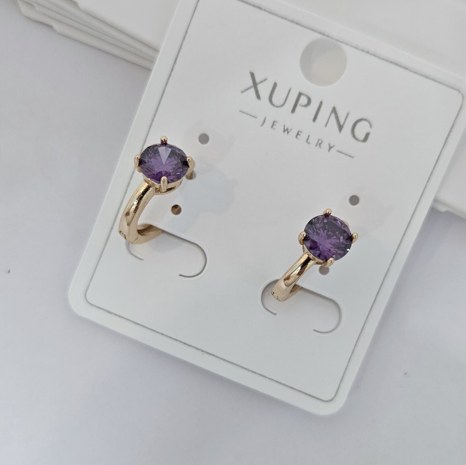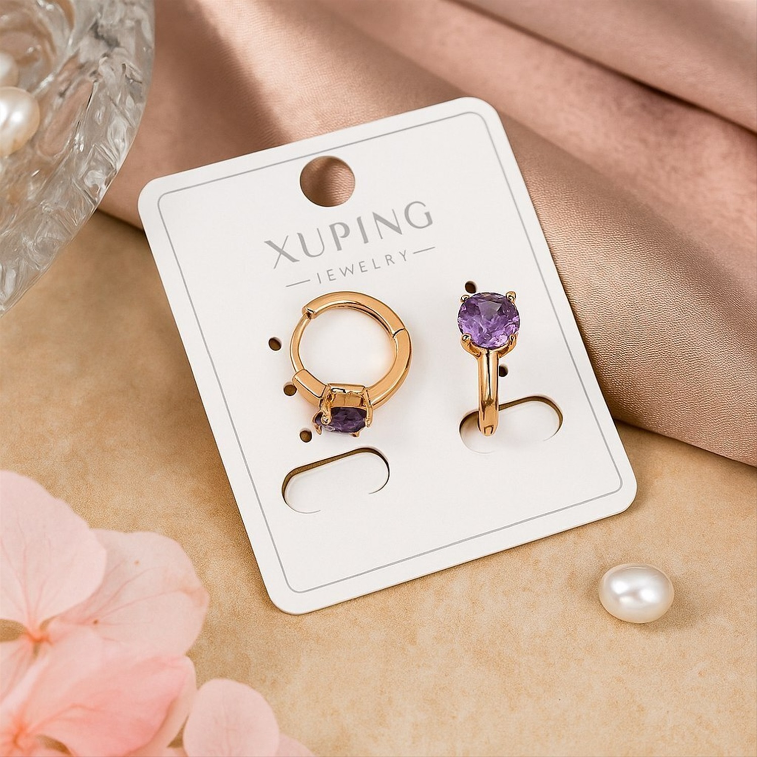 Серьги коллекция "Xuping" покрытие позолота, вставка: фианит, цвет: фиолетовый, арт.004.007 2 фото