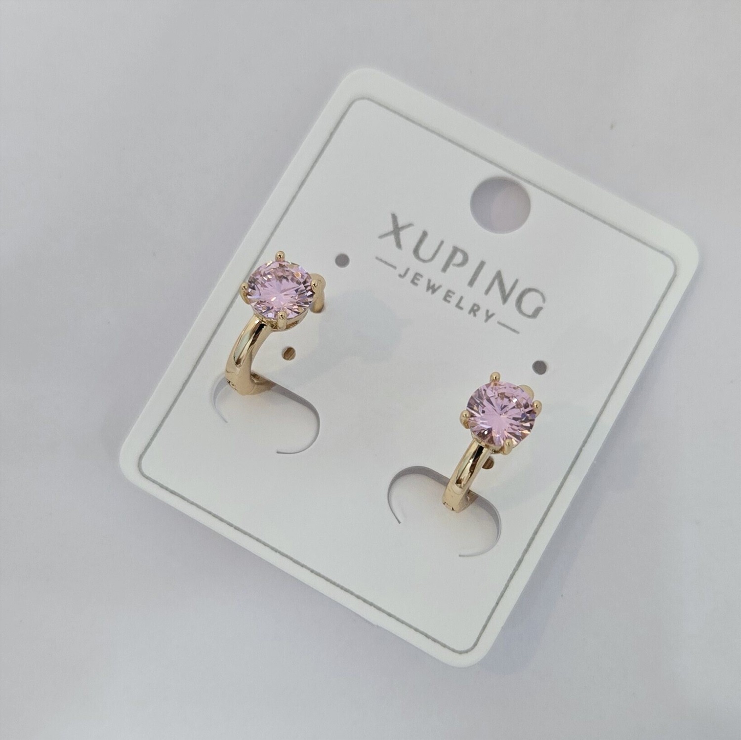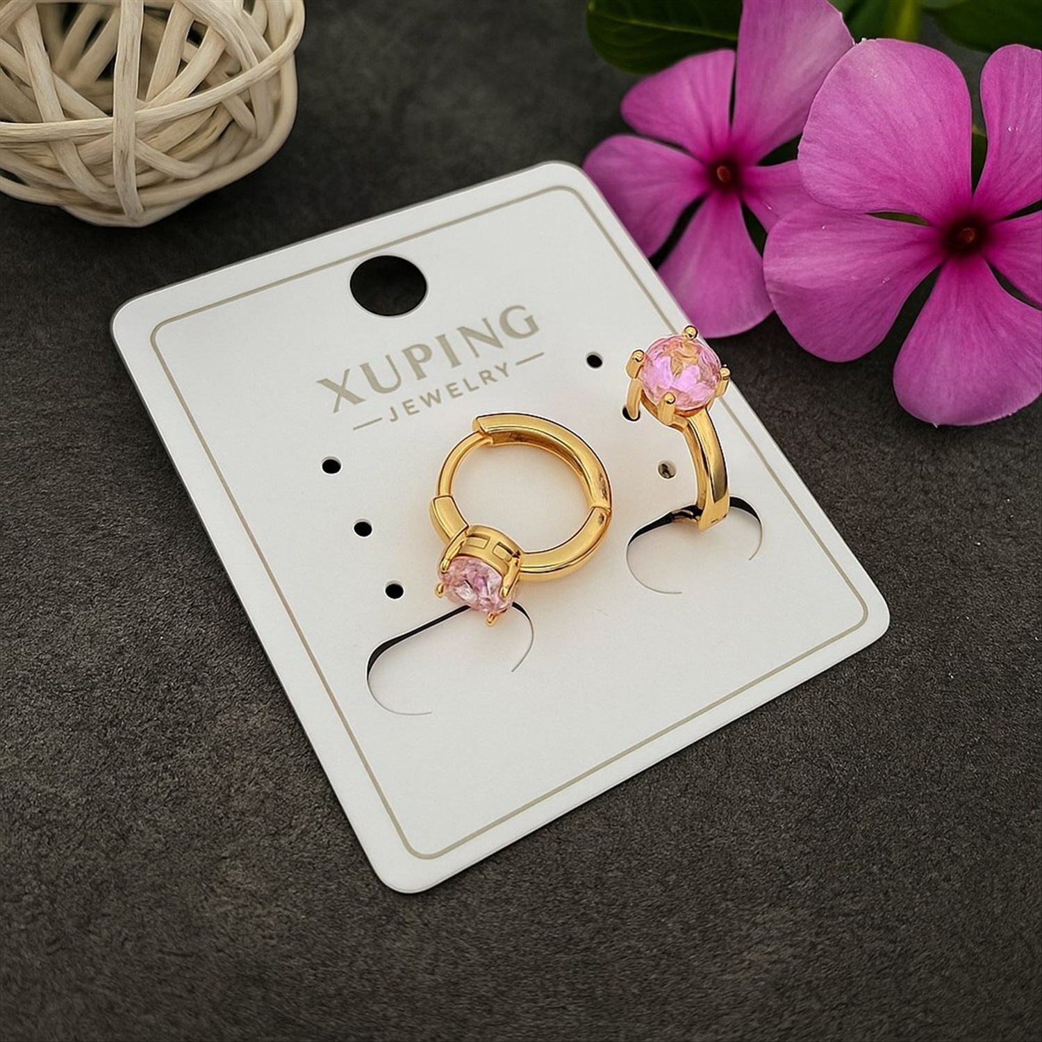 Серьги коллекция "Xuping" покрытие позолота, вставка: фианит, цвет: розовый, арт.004.010 2 фото