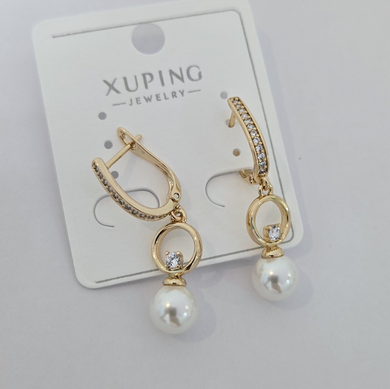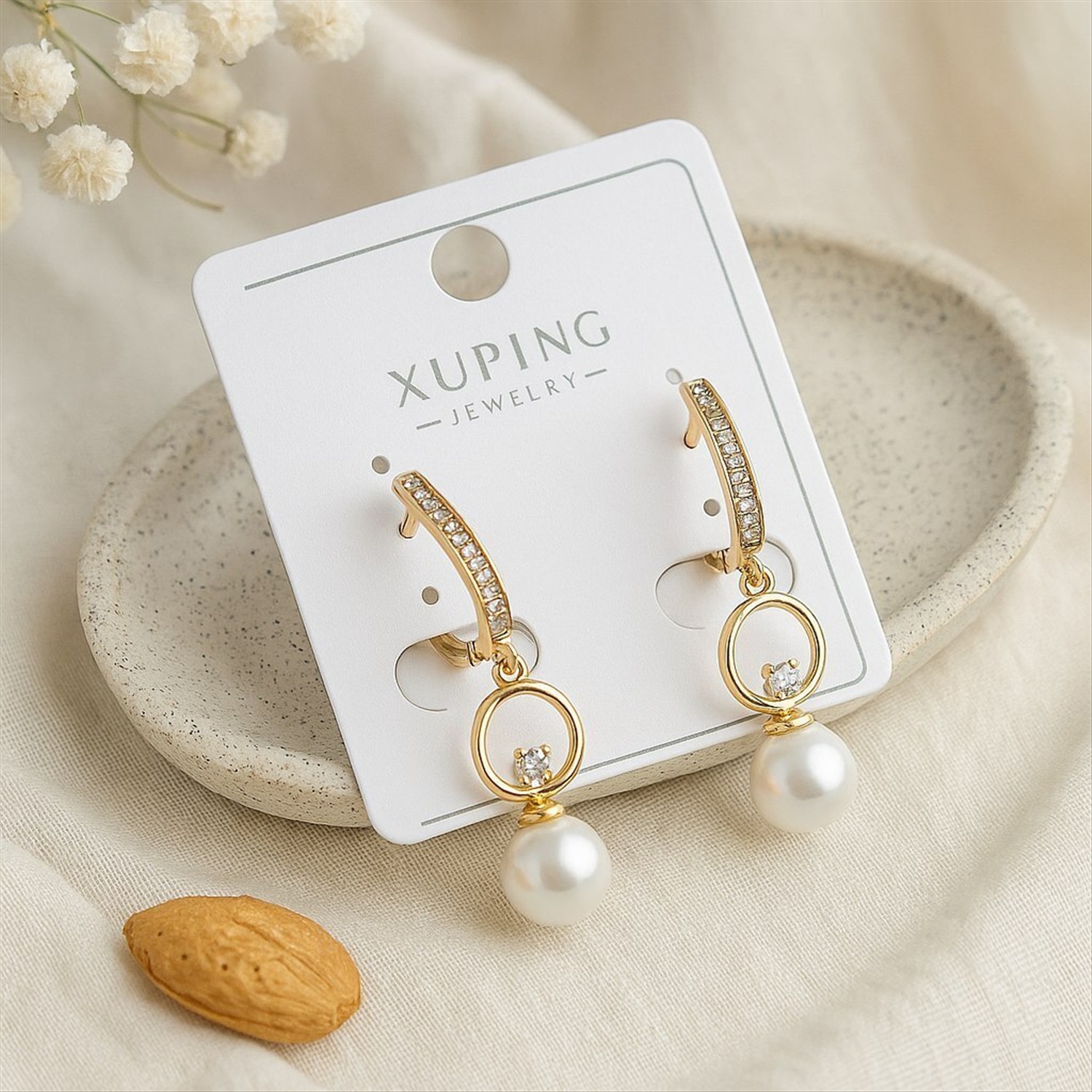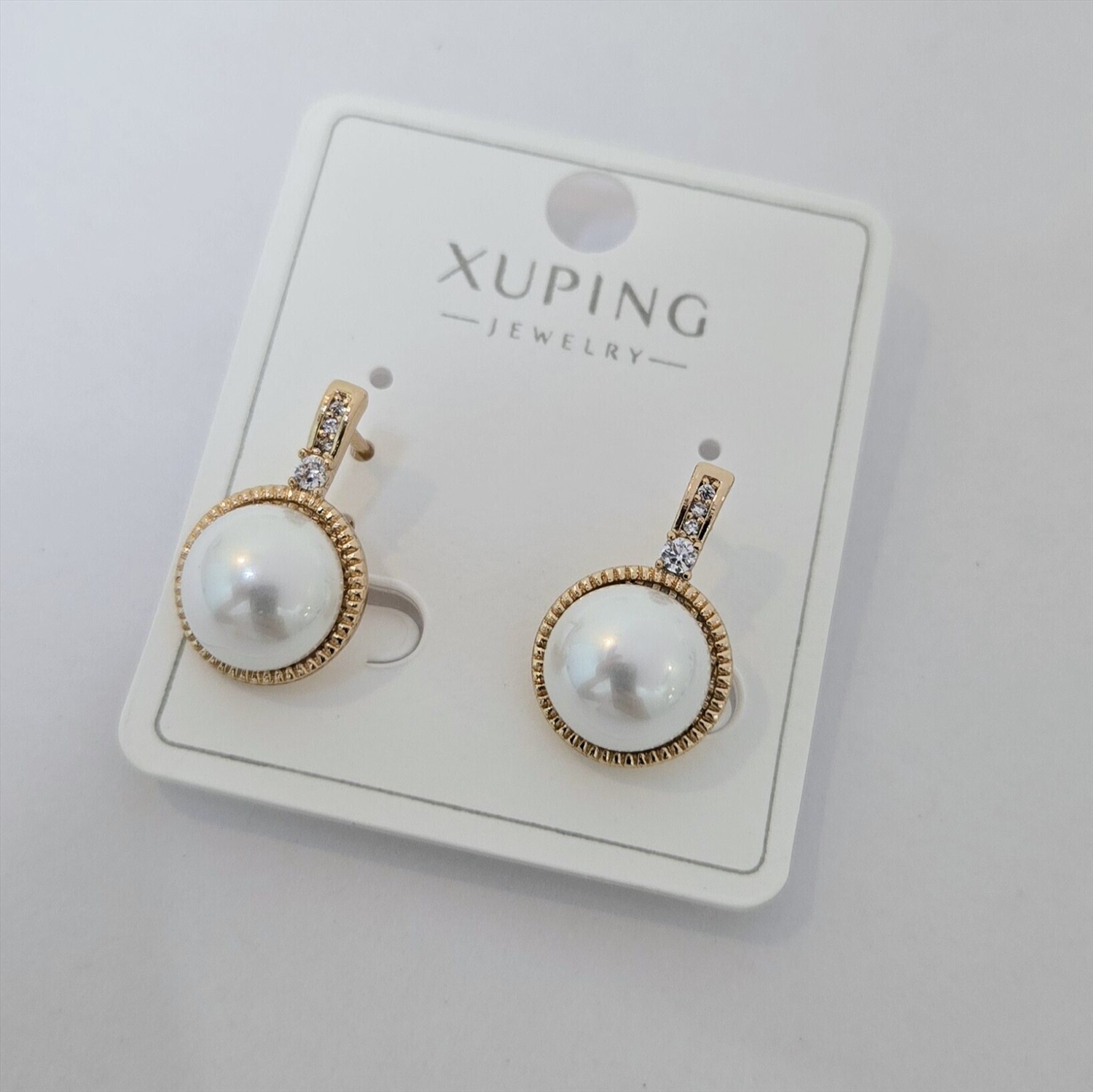 Серьги коллекция "Xuping" покрытие позолота, вставка: искусственный жемчуг и фианиты, арт.004.031 2 фото