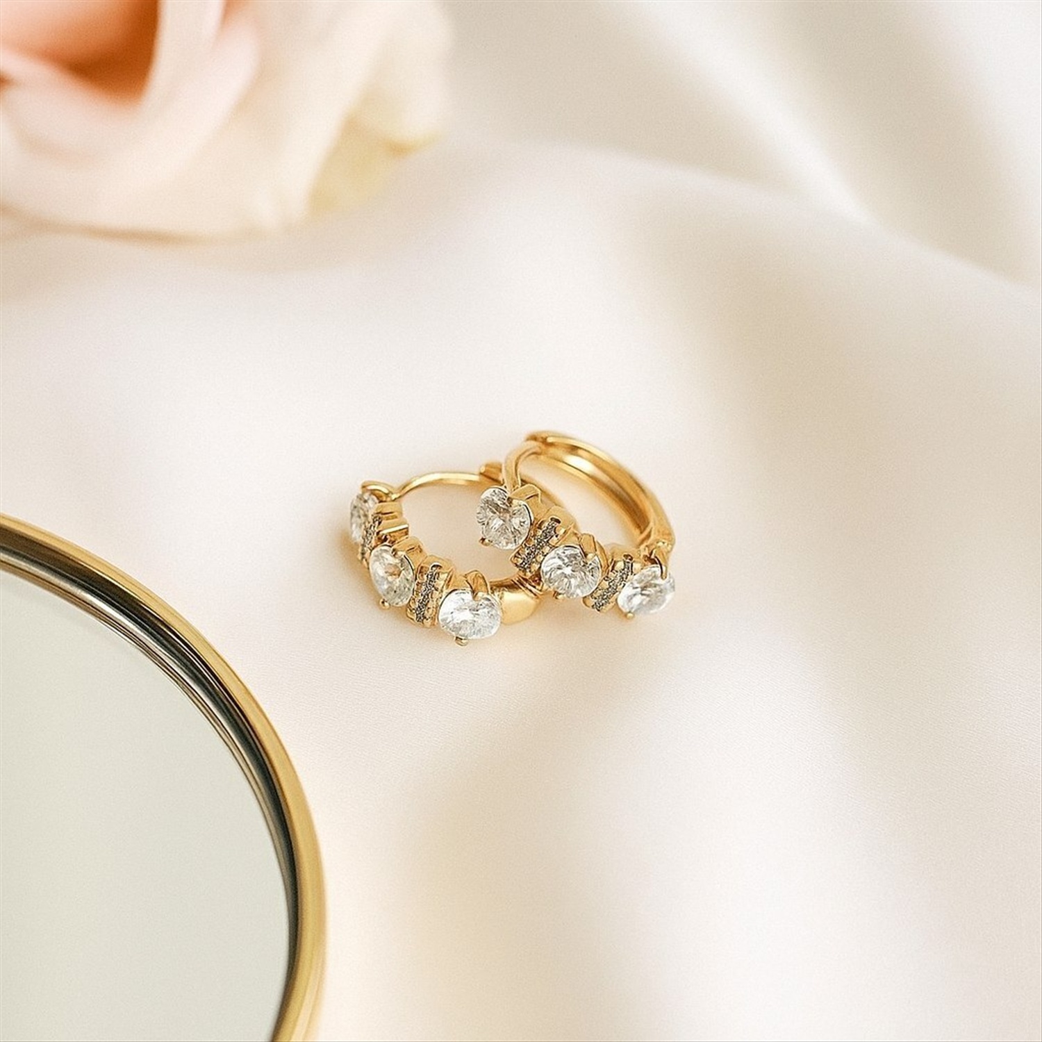 Серьги коллекция "Xuping" покрытие позолота, вставка: фианит, цвет: прозрачный, арт.004.013 3 фото