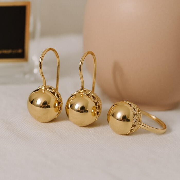 Комплект ювелирной бижутерии коллекция "Дубай" серьги и кольцо 20 р, покрытие позолота,  арт.217.366-20 2 фото