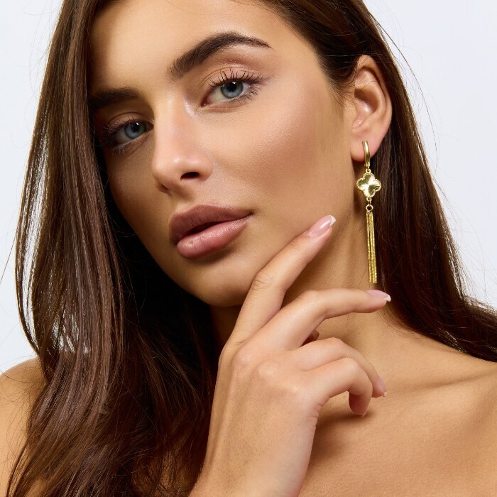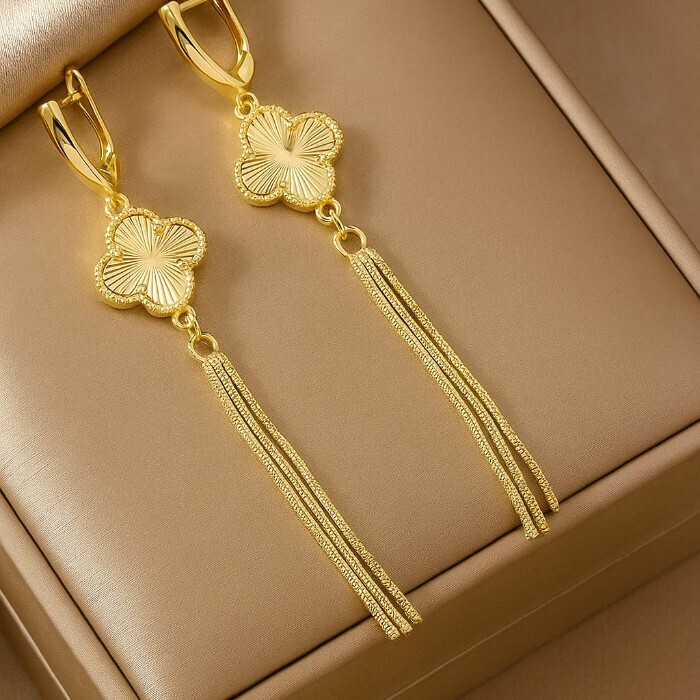 Серьги подвески длинные клевер ювелирная бижутерия Итальянское золото (покрытие желтое 14к) , арт.217.428 2 фото