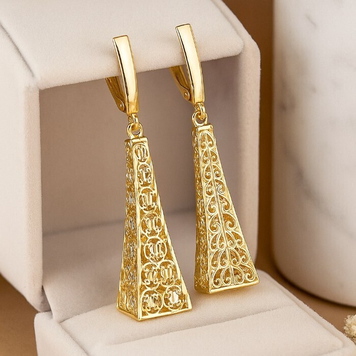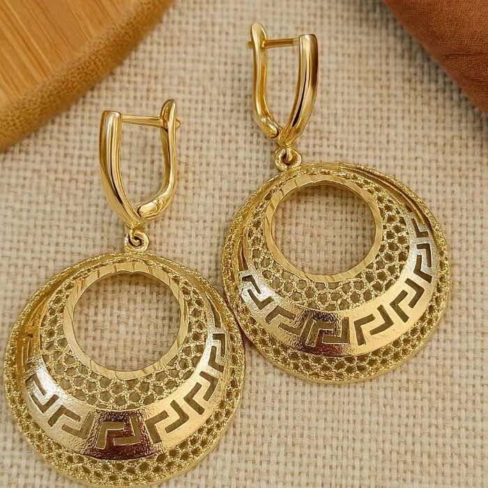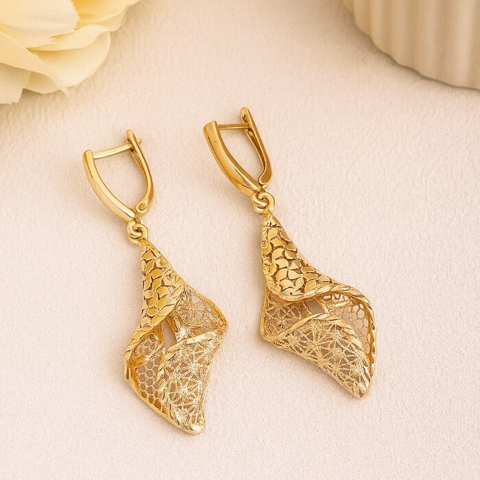 Серьги подвески крупные ювелирная бижутерия Итальянское золото (покрытие желтое 14к) , арт.217.429 2 фото