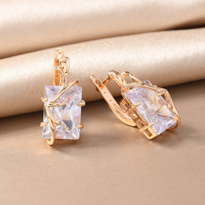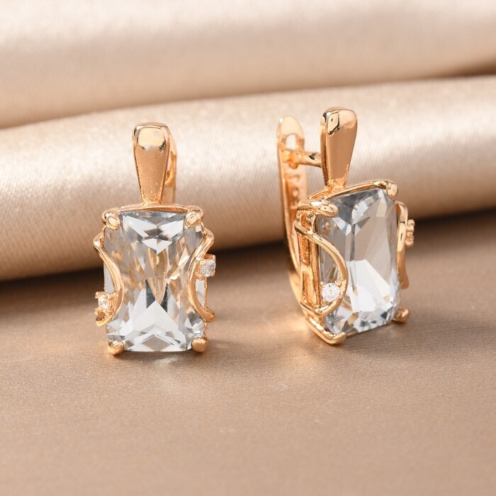 Серьги с крупным камнем ювелирная бижутерия коллекция "Дубай", покрытие позолота,  вставка: фианит и цирконы, цвет: прозрачный, арт.217.361 2 фото