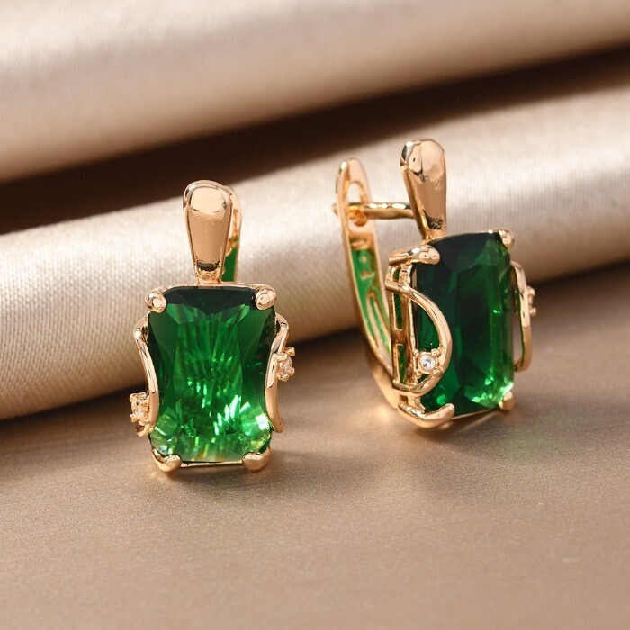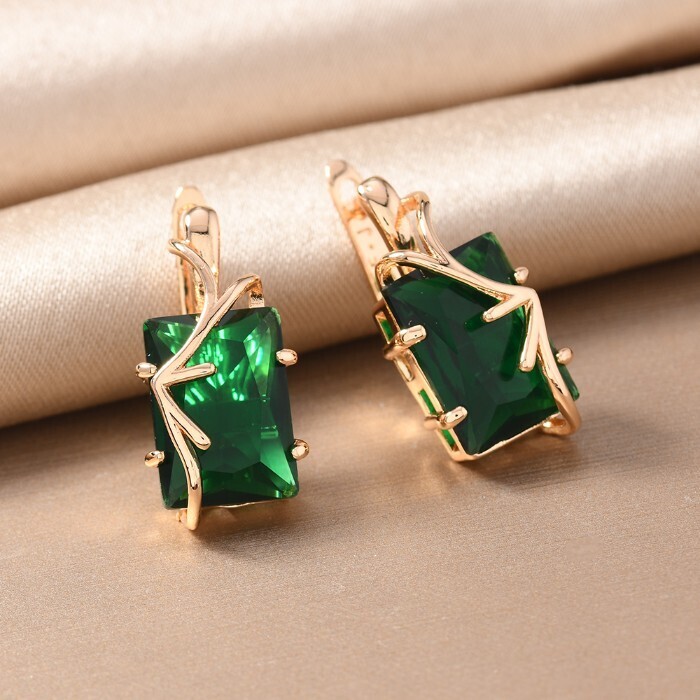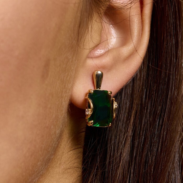 Серьги с крупным камнем ювелирная бижутерия коллекция "Дубай", покрытие позолота,  вставка: фианит, цвет: зеленый, арт.217.357 2 фото