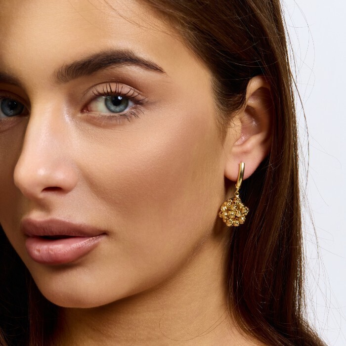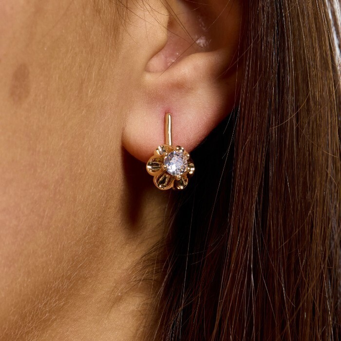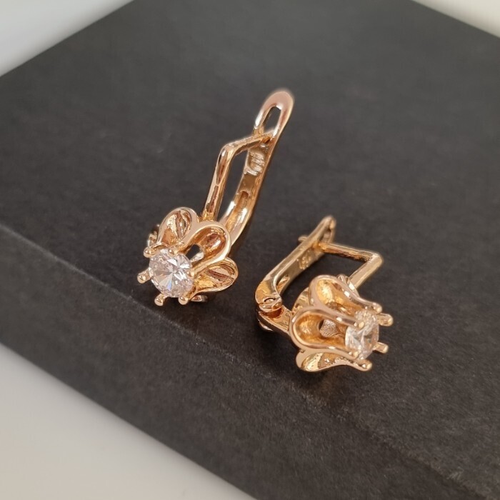 Серьги цветы ювелирная бижутерия коллекция "Дубай", покрытие позолота,  вставка: фианит, цвет: прозрачный, арт.217.441 2 фото