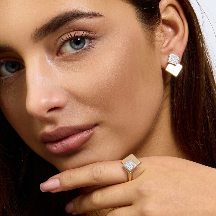 Комплект ювелирной бижутерии коллекция "Дубай" серьги и кольцо 20 р, покрытие позолота, вставка: фианиты, цвет: прозрачный, арт.217.373-20 2 фото