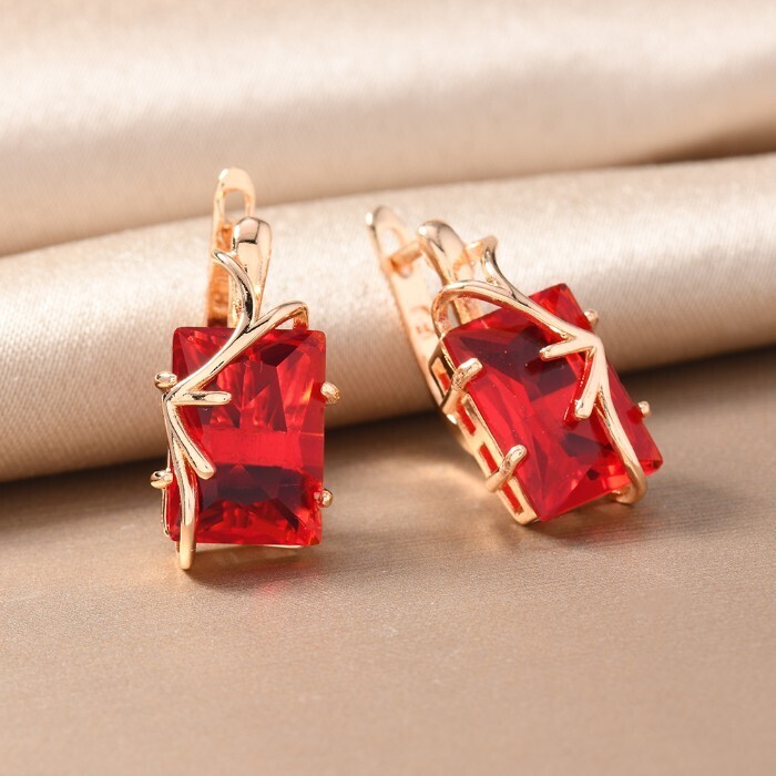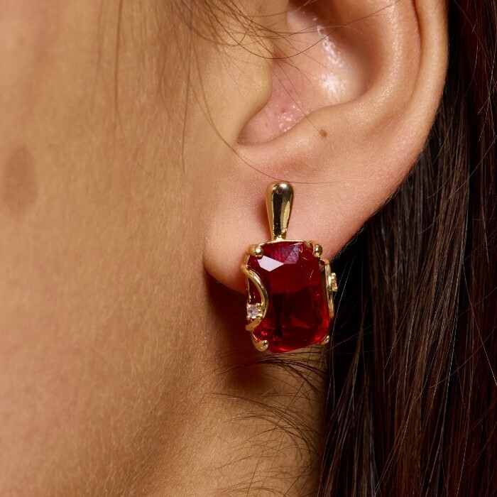 Серьги с крупным камнем ювелирная бижутерия коллекция "Дубай", покрытие позолота,  вставка: фианит, цвет: красный, арт.217.355 2 фото