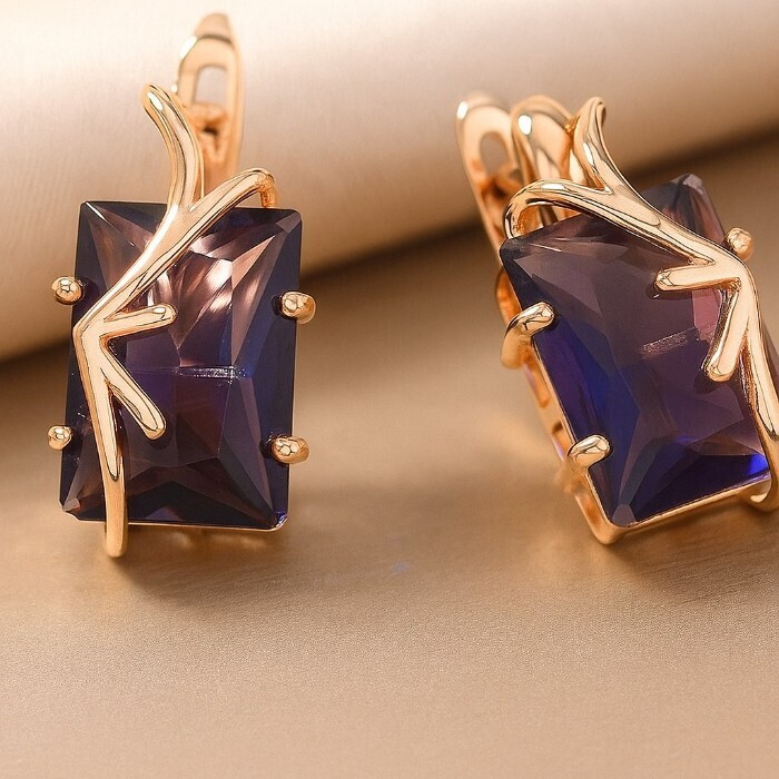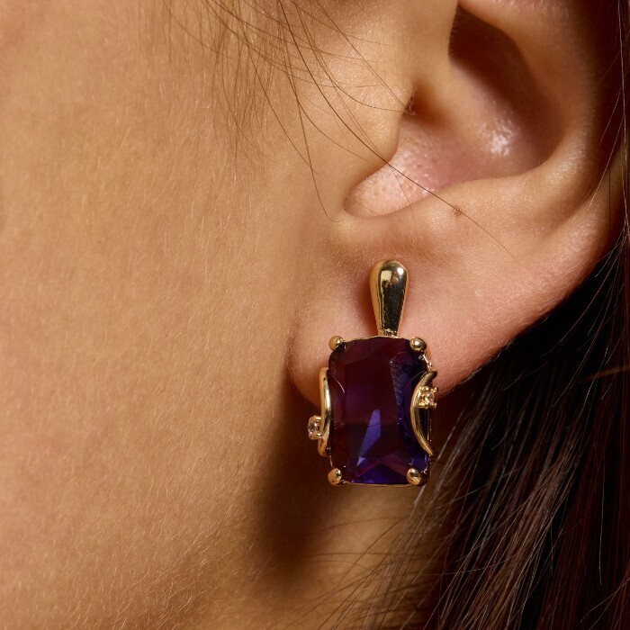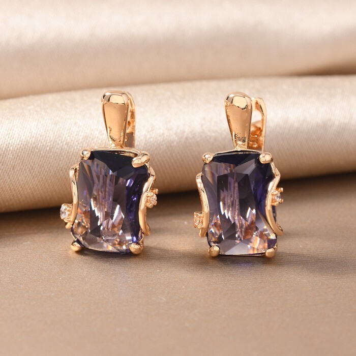 Серьги с крупным камнем ювелирная бижутерия коллекция "Дубай", покрытие позолота,  вставка: фианит, цвет: фиолетовый, арт.217.354 2 фото