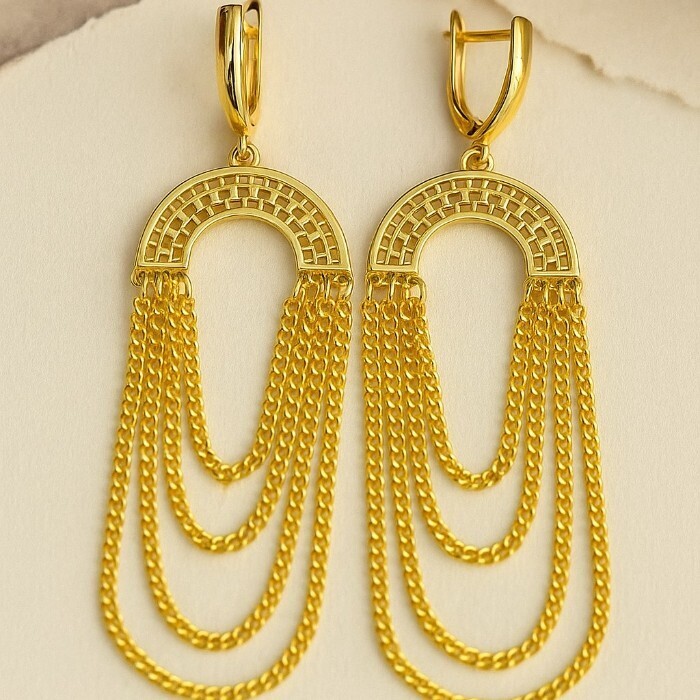 Серьги длинные висячие ювелирная бижутерия Итальянское золото (покрытие желтое 14к) , арт.217.434 2 фото