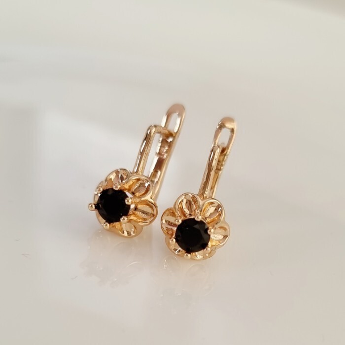 Серьги цветы ювелирная бижутерия коллекция "Дубай", покрытие позолота,  вставка: фианит, цвет: черный, арт.217.440