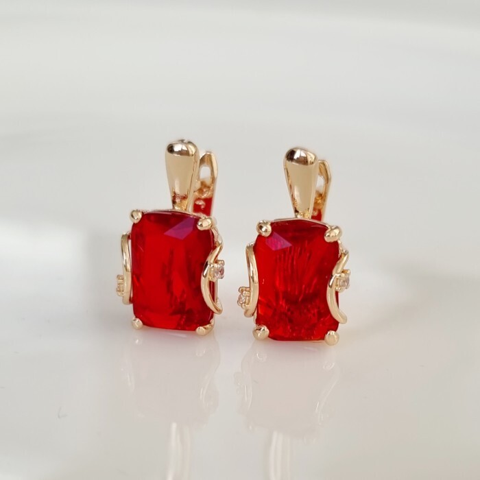 Серьги с крупным камнем ювелирная бижутерия коллекция "Дубай", покрытие позолота,  вставка: фианит и цирконы, цвет: красный и прозрачный, арт.217.360 2 фото