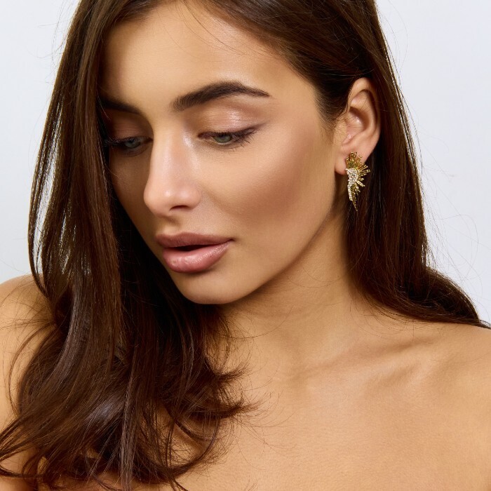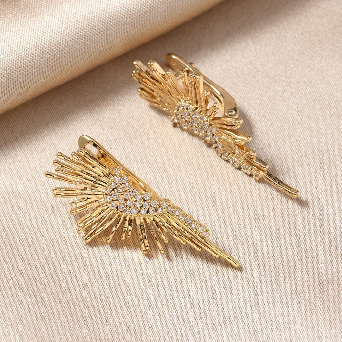 Серьги ювелирная бижутерия Итальянское золото (покрытие желтое 14к) , вставка: фианиты, цвет: прозрачный, арт.217.433 2 фото