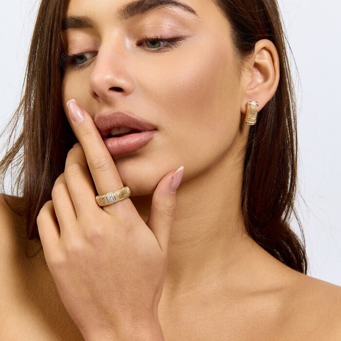 Комплект ювелирной бижутерии коллекция "Дубай" серьги и кольцо 19 р, покрытие позолота, вставка: фианиты, цвет: прозрачный, арт.217.373-19 2 фото