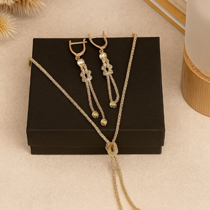 Комплект ювелирной бижутерии Итальянское золото (покрытие желтое 14к) , колье и серьги, арт.217.432 2 фото
