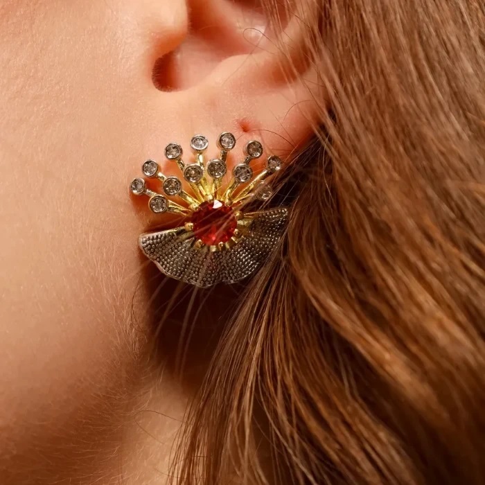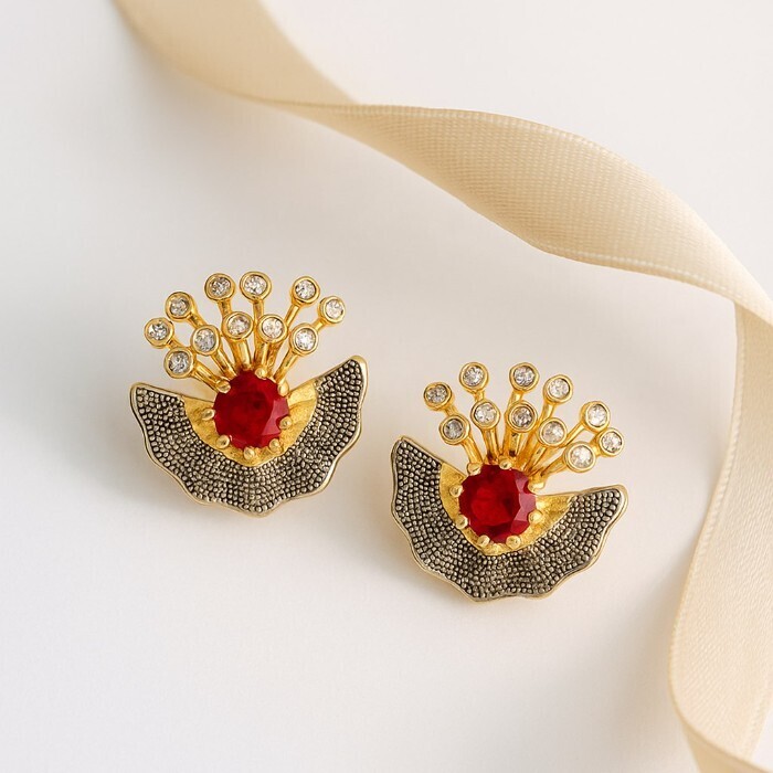 Серьги ювелирная бижутерия Итальянское золото (покрытие желтое 14к), вставка: фианиты, цвет: красный и прозрачный, арт.313.372 2 фото