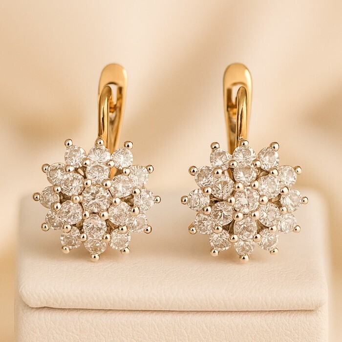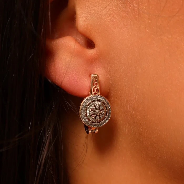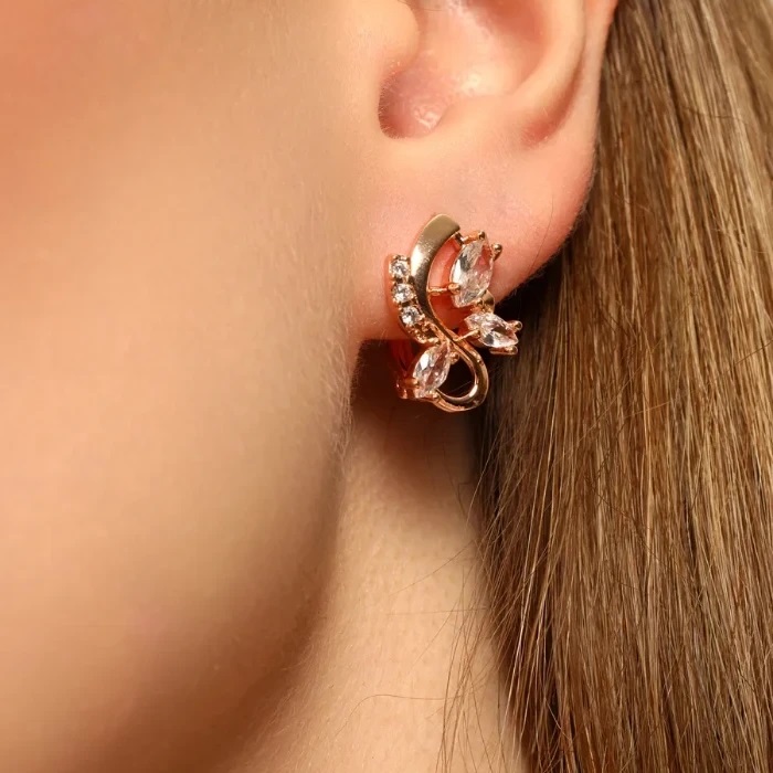 Серьги ювелирная бижутерия коллекция "Дубай" покрытие позолота, вставка: фианиты, цвет: прозрачный, арт.313.375 2 фото