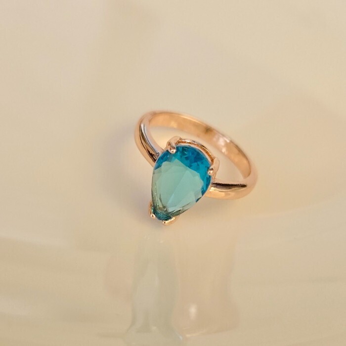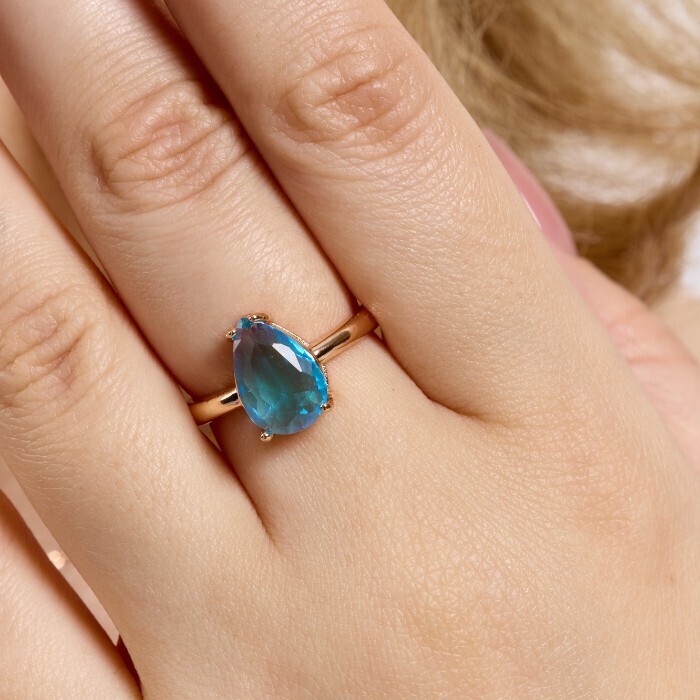 Кольцо 20 р ювелирная бижутерия коллекция "Дубай", покрытие позолота, вставка: фианиты, цвет: голубой, арт.414.099-20 2 фото