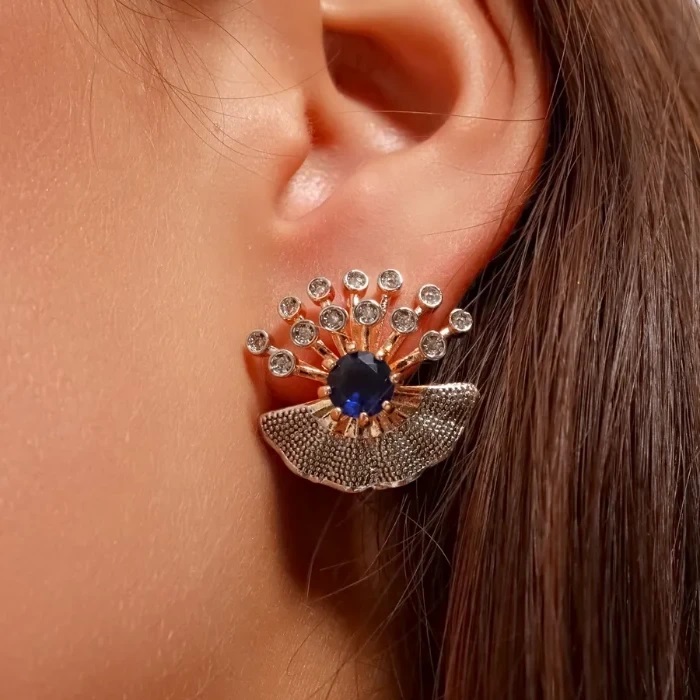 Серьги ювелирная бижутерия коллекция "Дубай" покрытие позолота, вставка: фианиты, цвет: синий и прозрачный, арт.313.368 3 фото