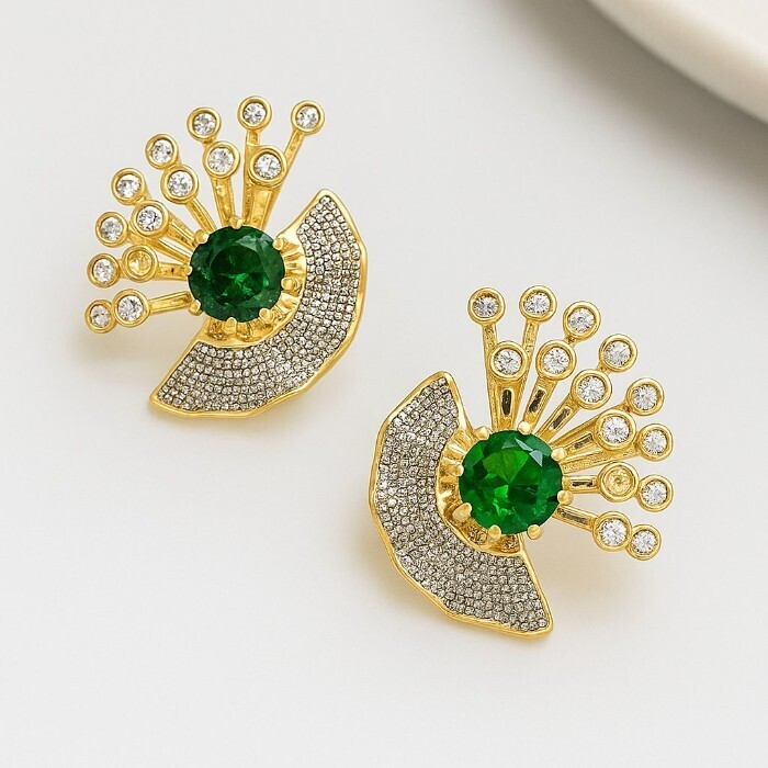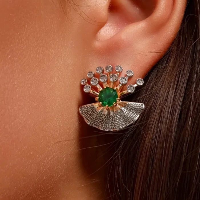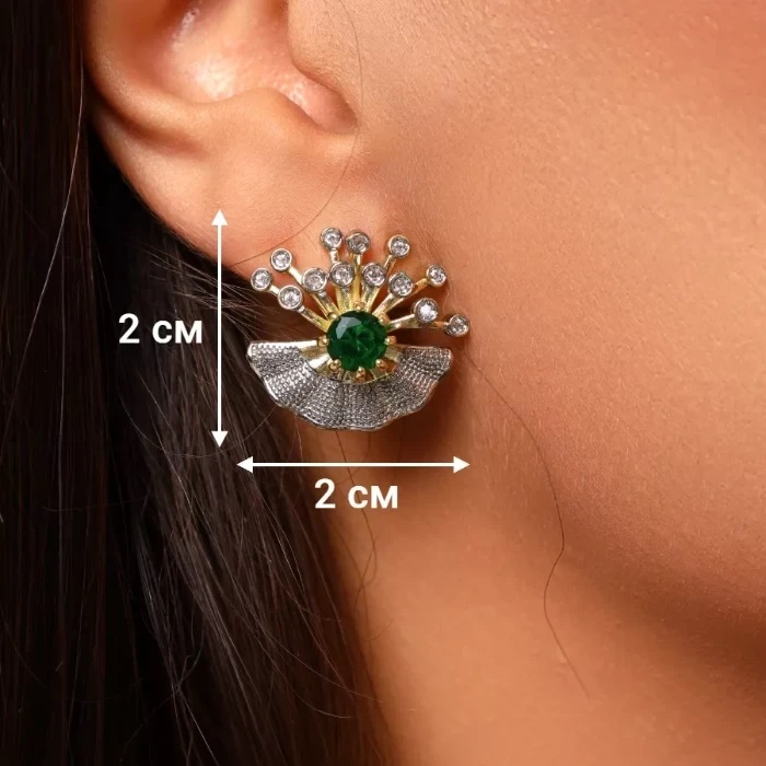 Серьги ювелирная бижутерия коллекция "Дубай" покрытие позолота, вставка: фианиты, цвет: зеленый и прозрачный, арт.313.367 2 фото