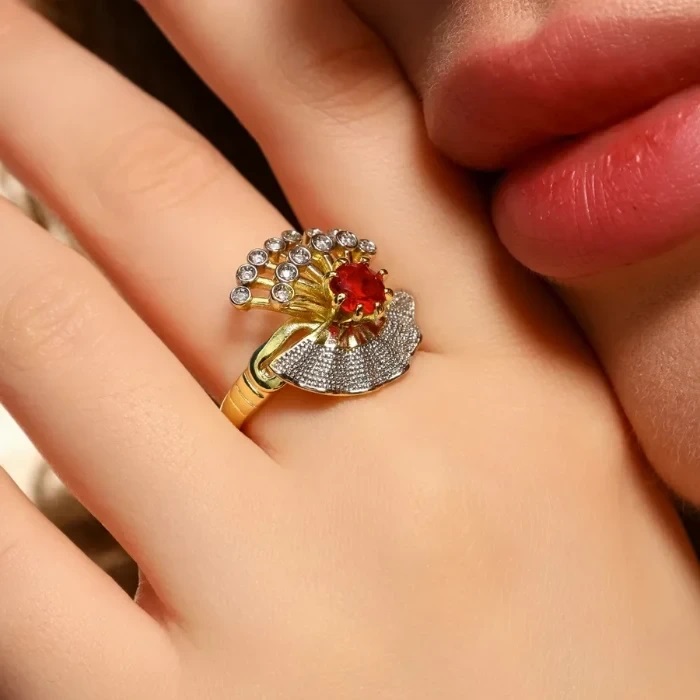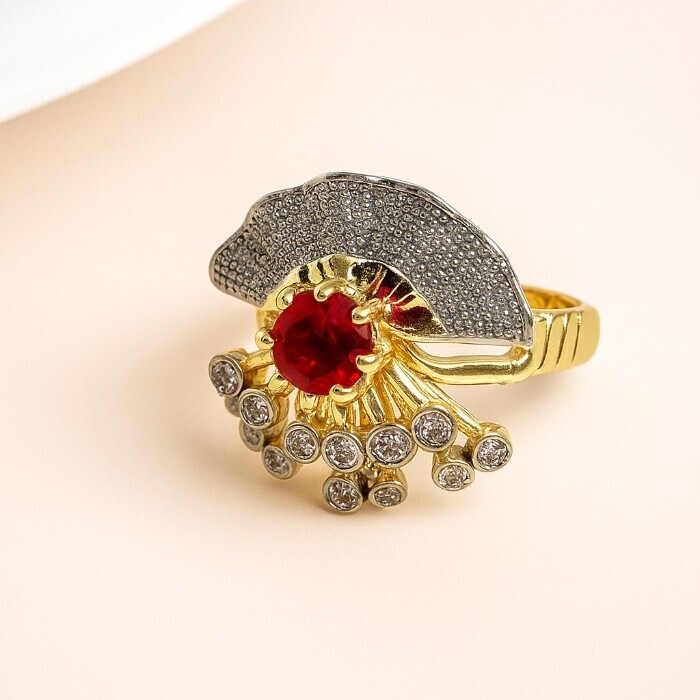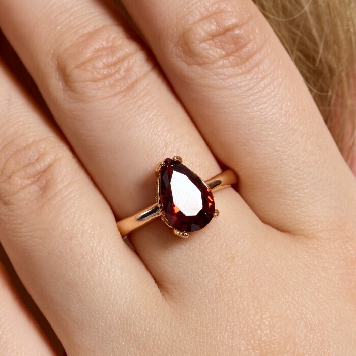 Кольцо 20 р ювелирная бижутерия коллекция "Дубай", покрытие позолота, вставка: фианиты, цвет: красный, арт.414.100-20 2 фото