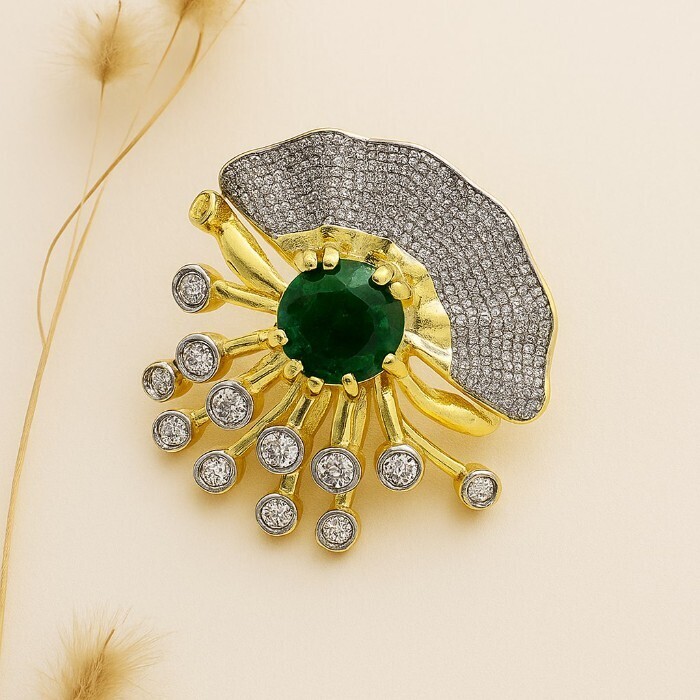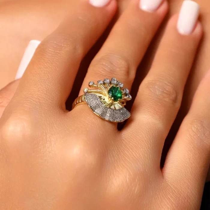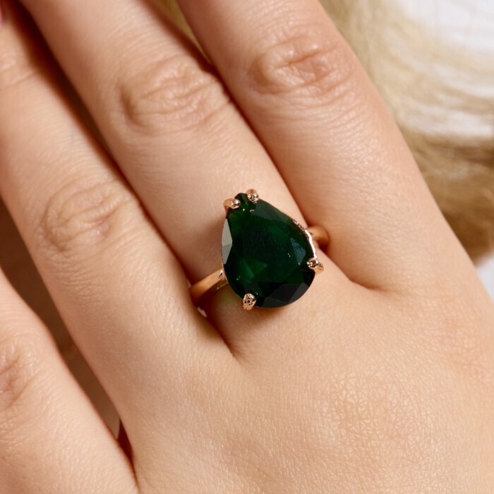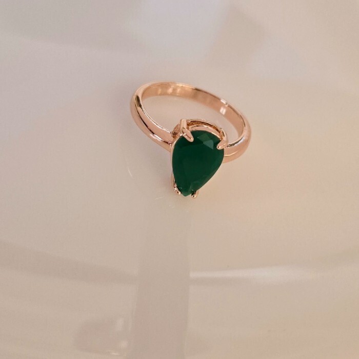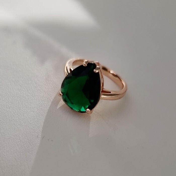 Кольцо 20 р ювелирная бижутерия Дубайское золото: покрытие позолота, вставка: фианит, цвет: зеленый, арт.414.137-20 2 фото