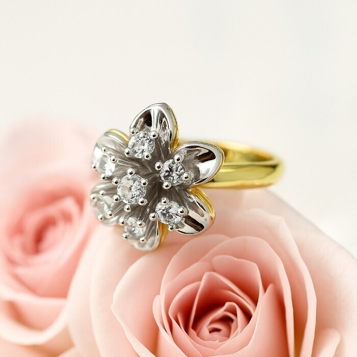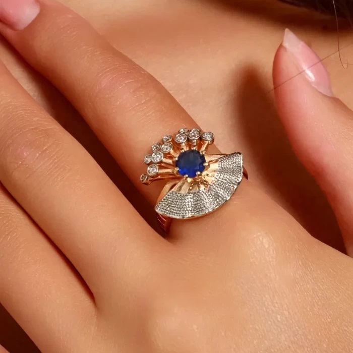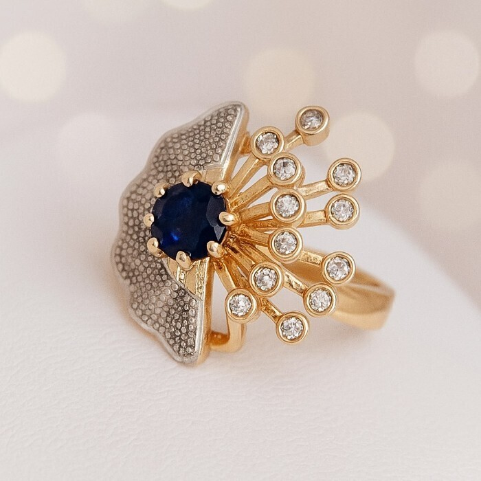 Кольцо 17 р ювелирная бижутерия Итальянское золото (покрытие желтое 14к), вставка: фианиты, цвет: прозрачный и синий, арт.313.380-17