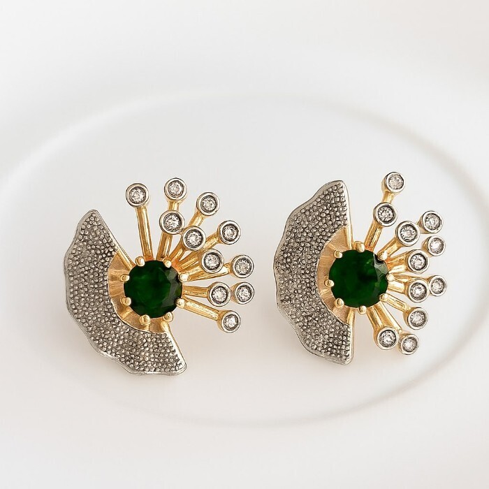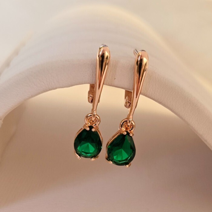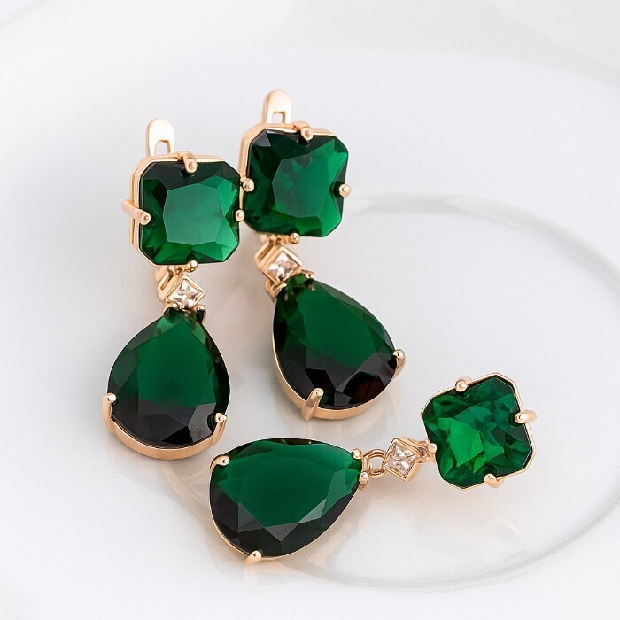 Серьги ювелирная бижутерия Итальянское золото (покрытие желтое 14к), вставка: фианиты, цвет: зеленый и прозрачный, арт.313.371 2 фото