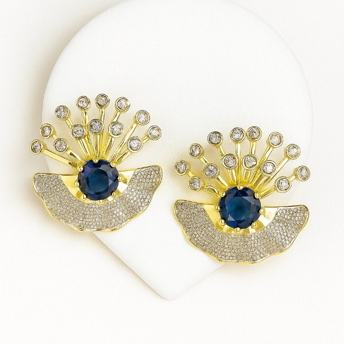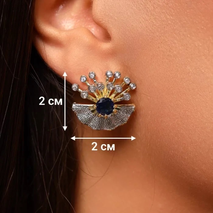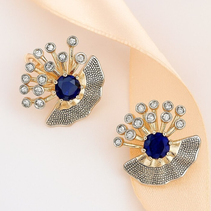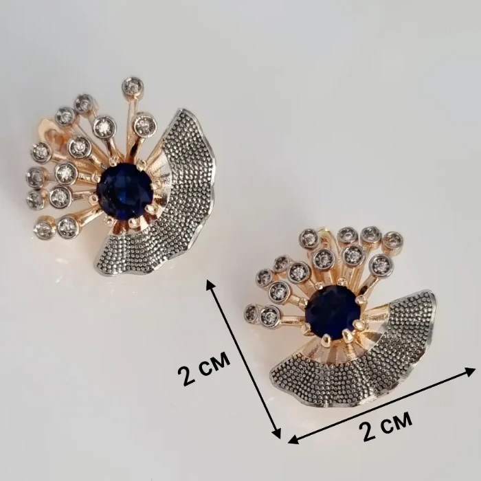 Серьги ювелирная бижутерия Итальянское золото (покрытие желтое 14к), вставка: фианиты, цвет: синий и прозрачный, арт.313.369 2 фото