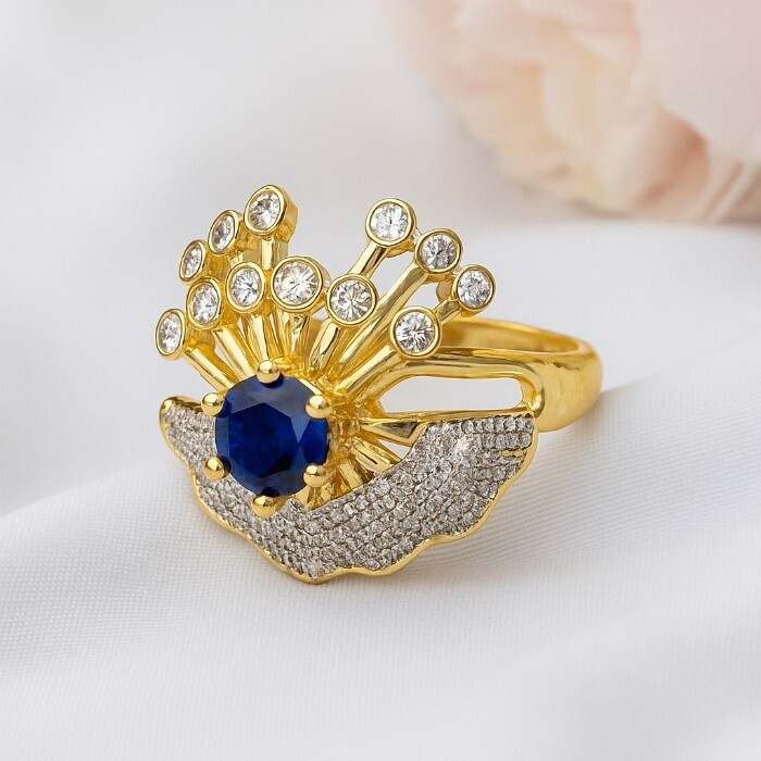 Кольцо 19 р ювелирная бижутерия Итальянское золото (покрытие желтое 14к), вставка: фианиты, цвет: прозрачный и синий, арт.313.380-19